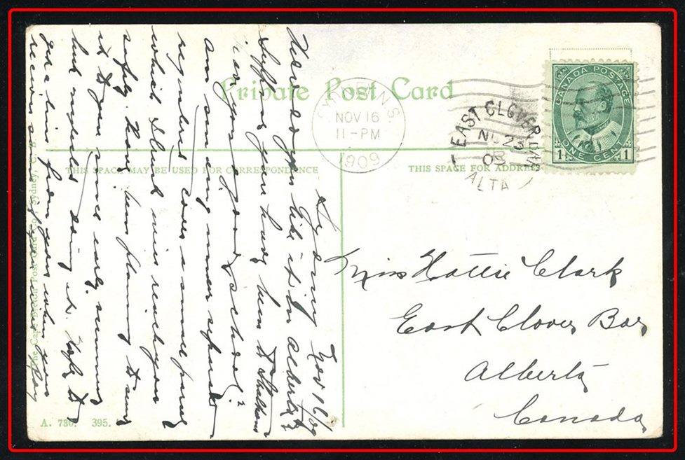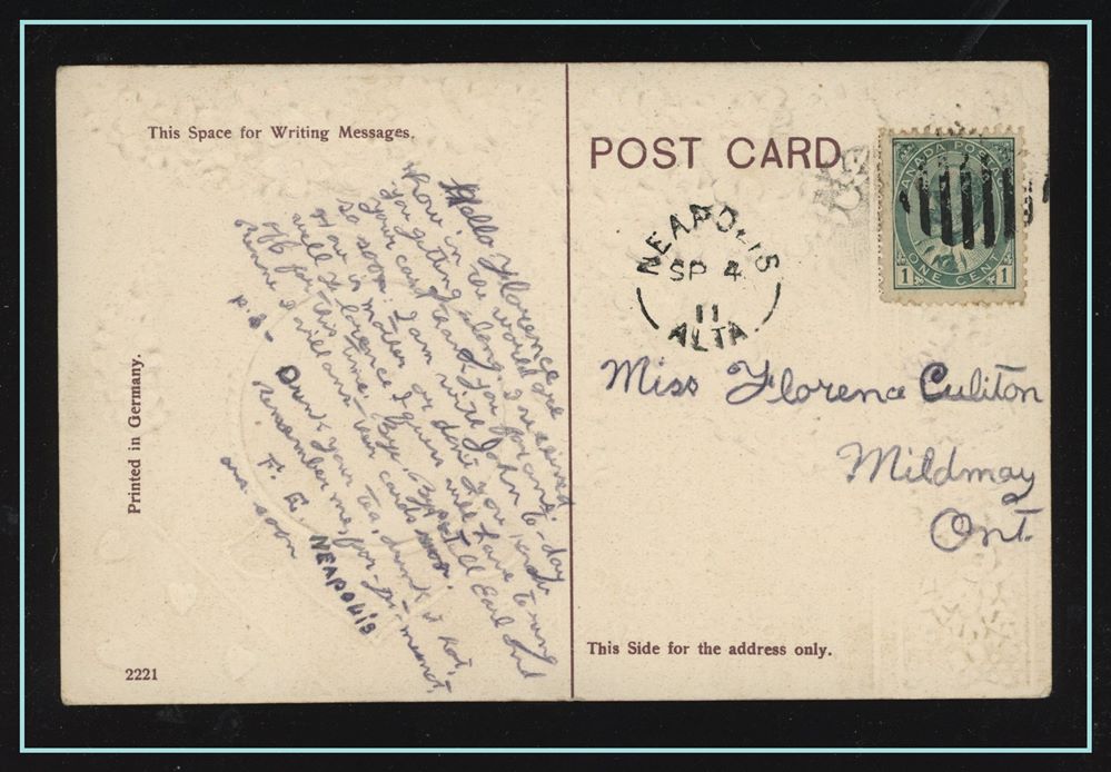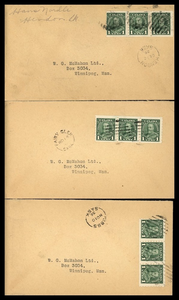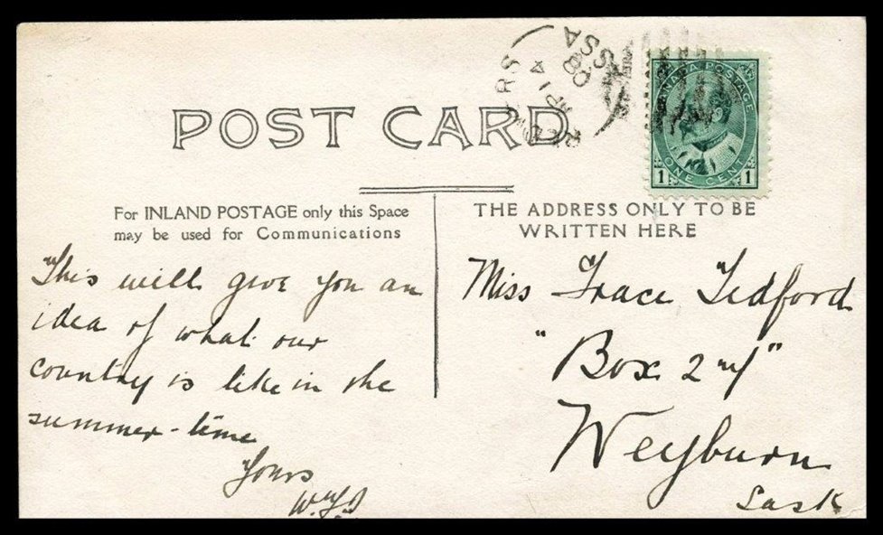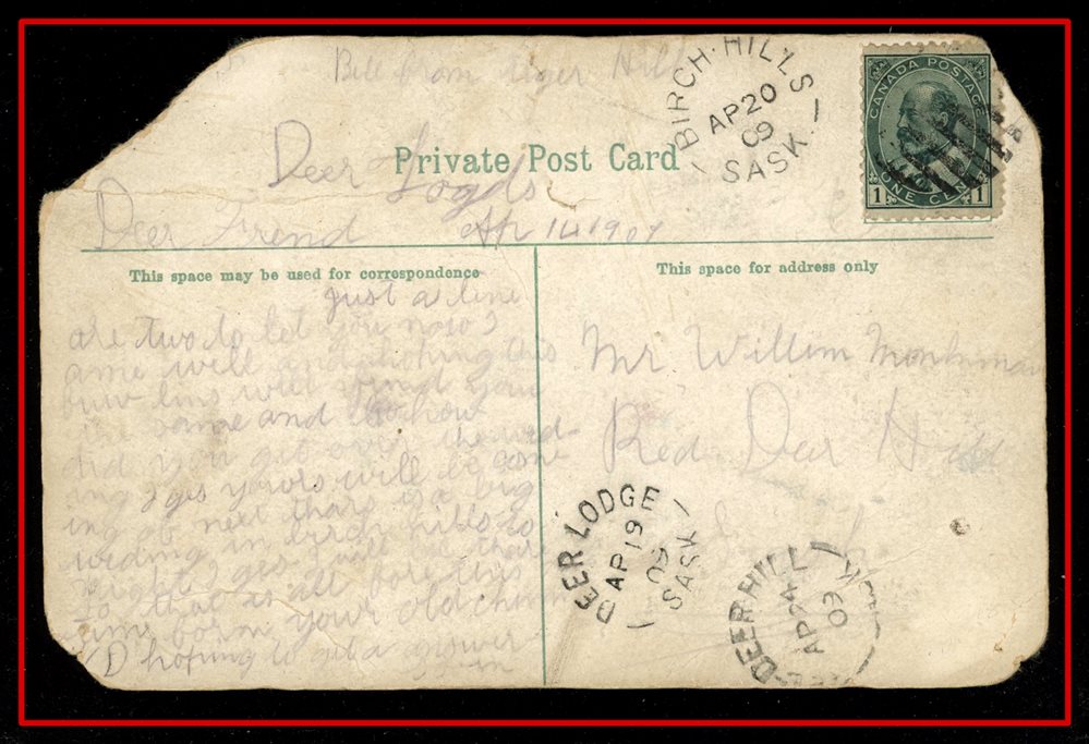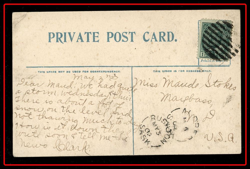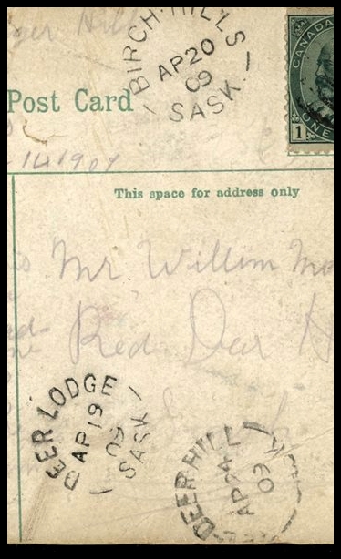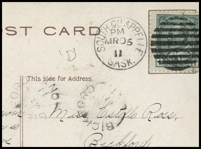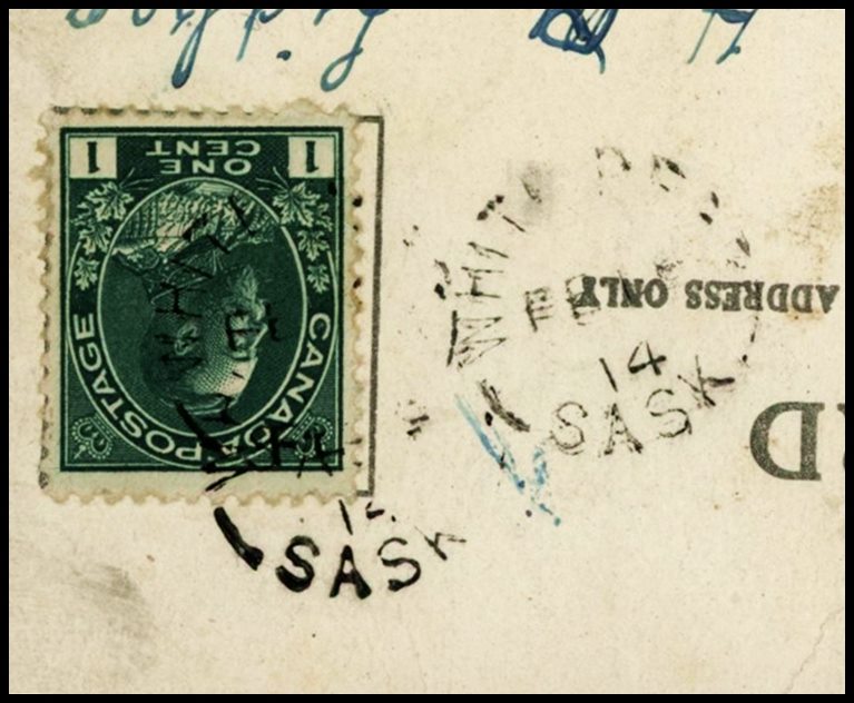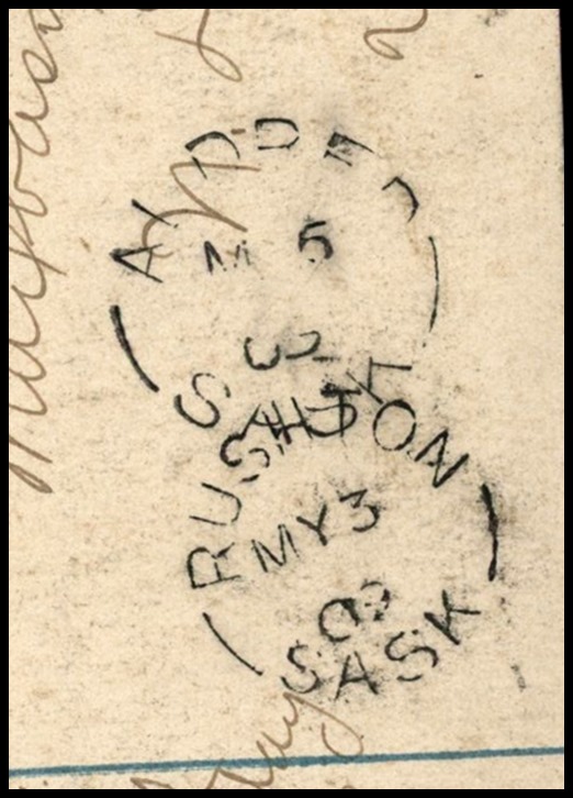 1173 P o/PC 89 tied by grid, RUSHTON MY3/09 SASK (very scarce RFD), ALFRED MY 6/09 SASK (RFE