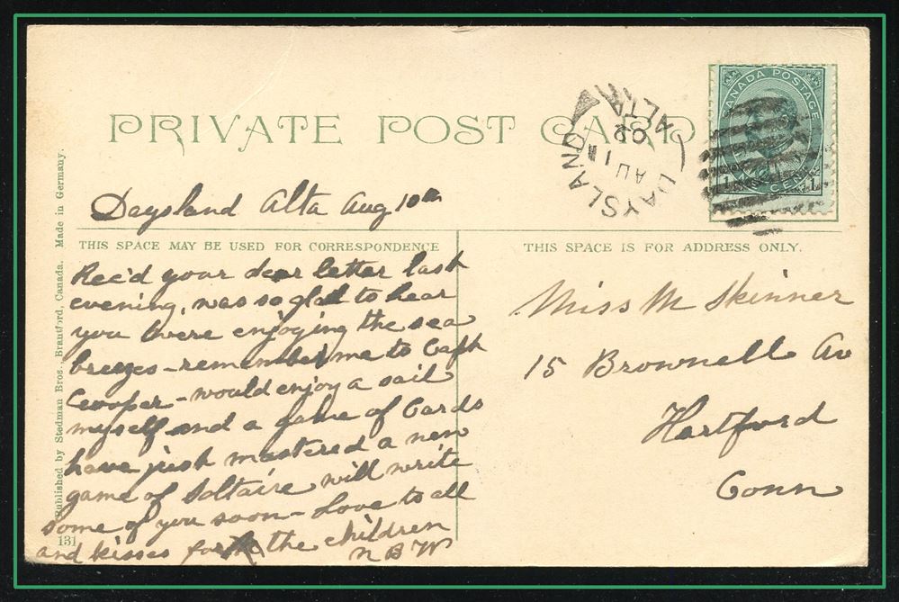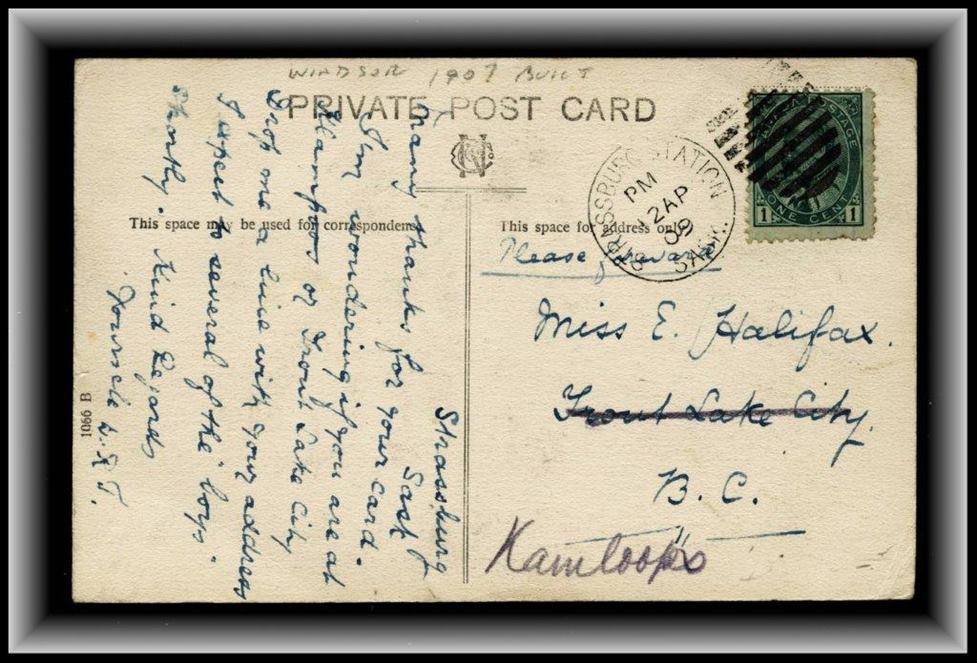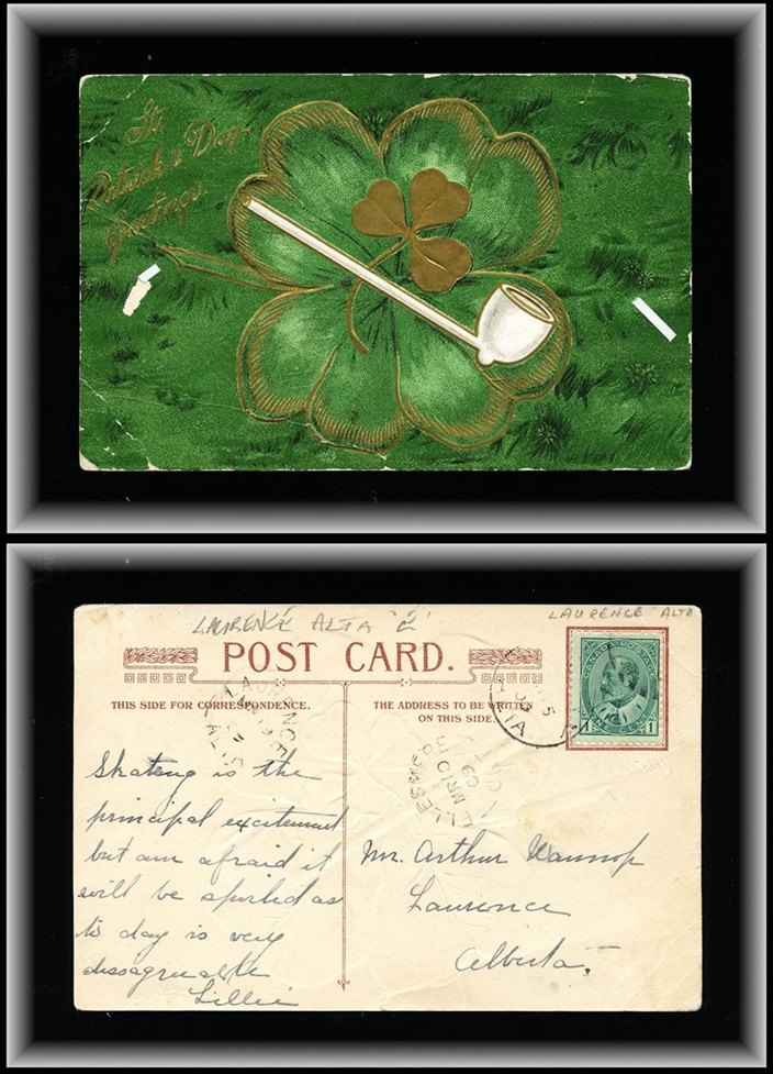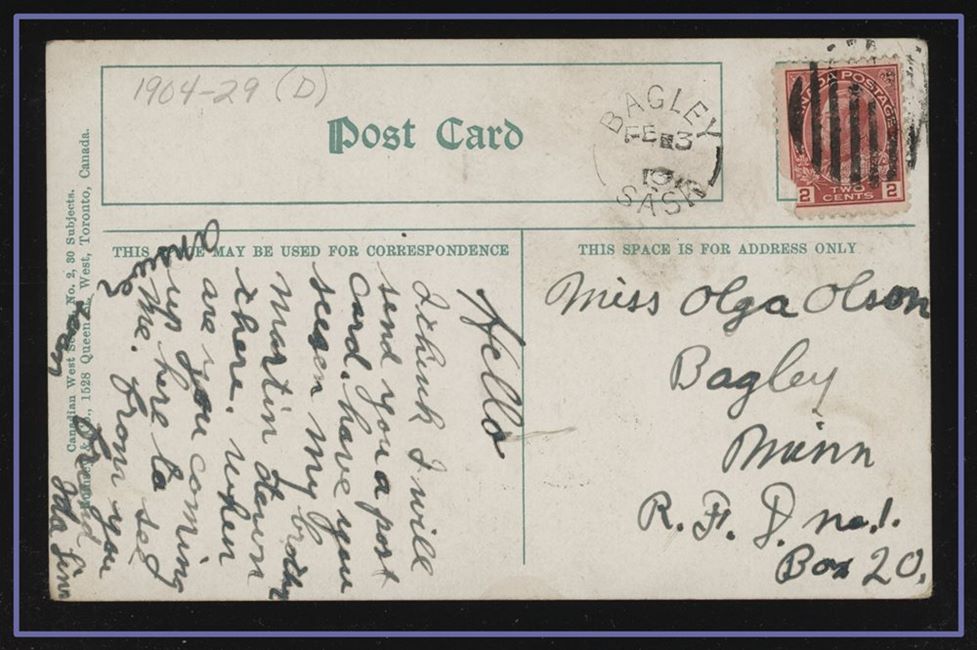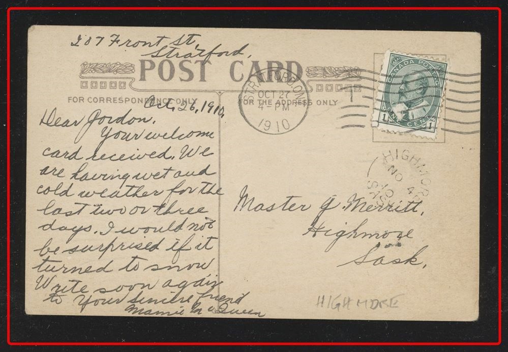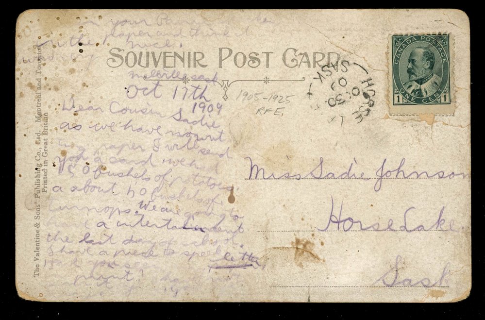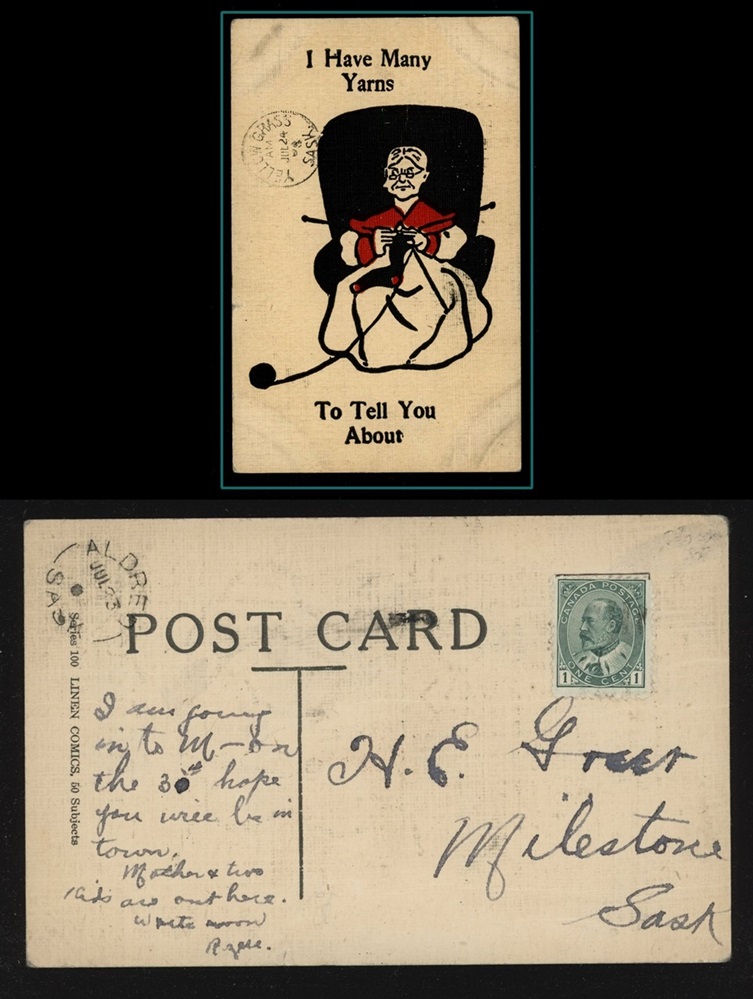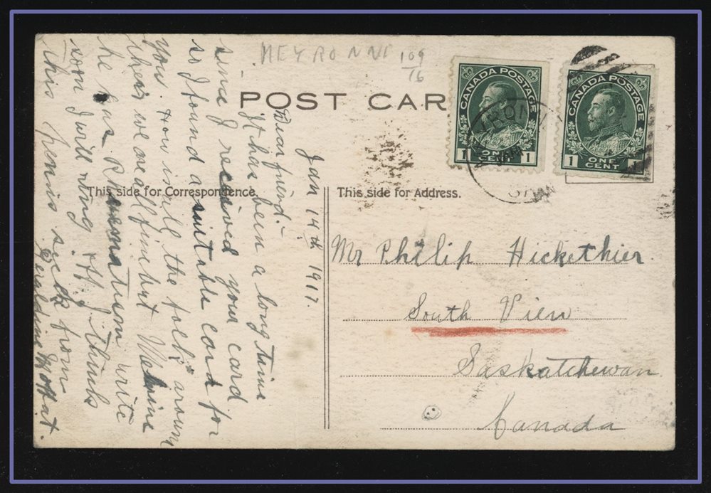1173 P o/PC 89 tied by grid, RUSHTON MY3/09 SASK (very scarce RFD), ALFRED MY 6/09 SASK (RFE