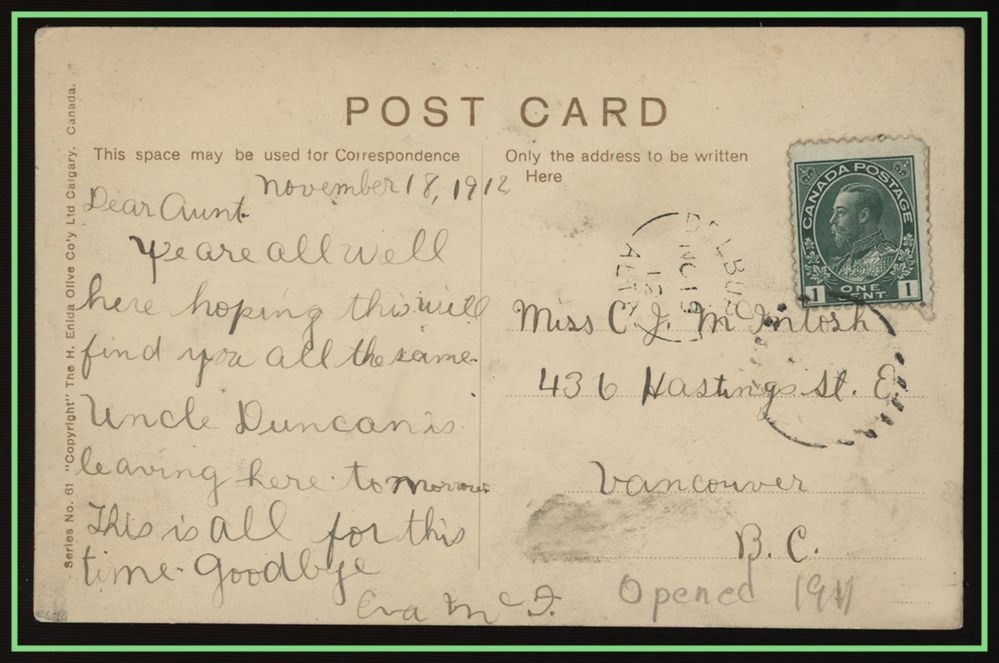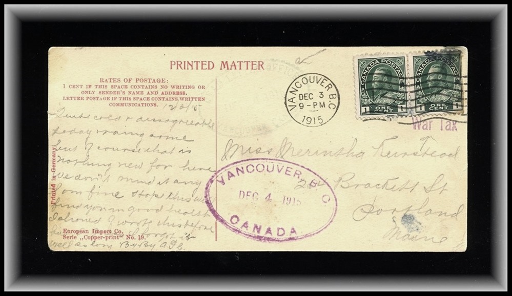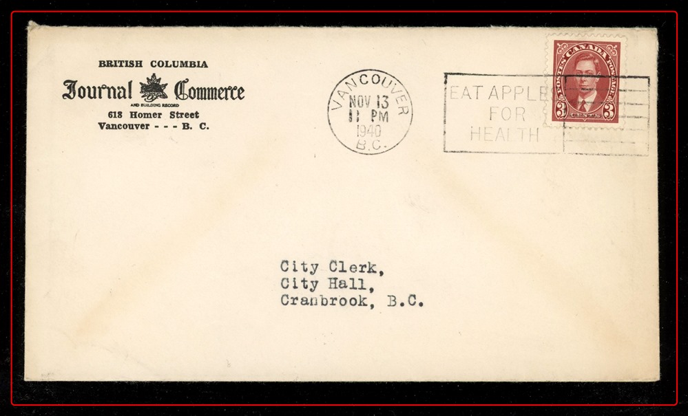 Oct 1-20 slogan, to Vancouver. Pretty. VF