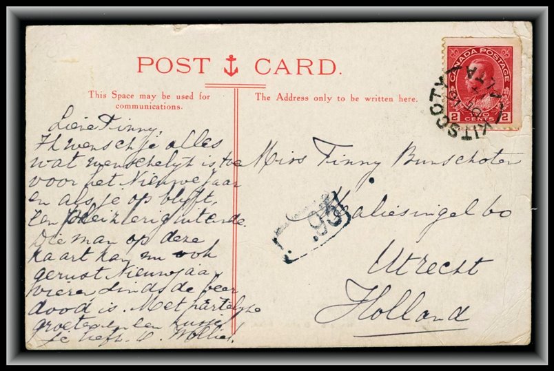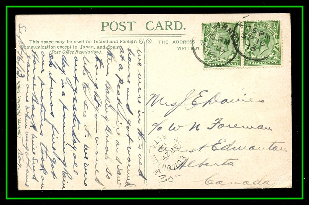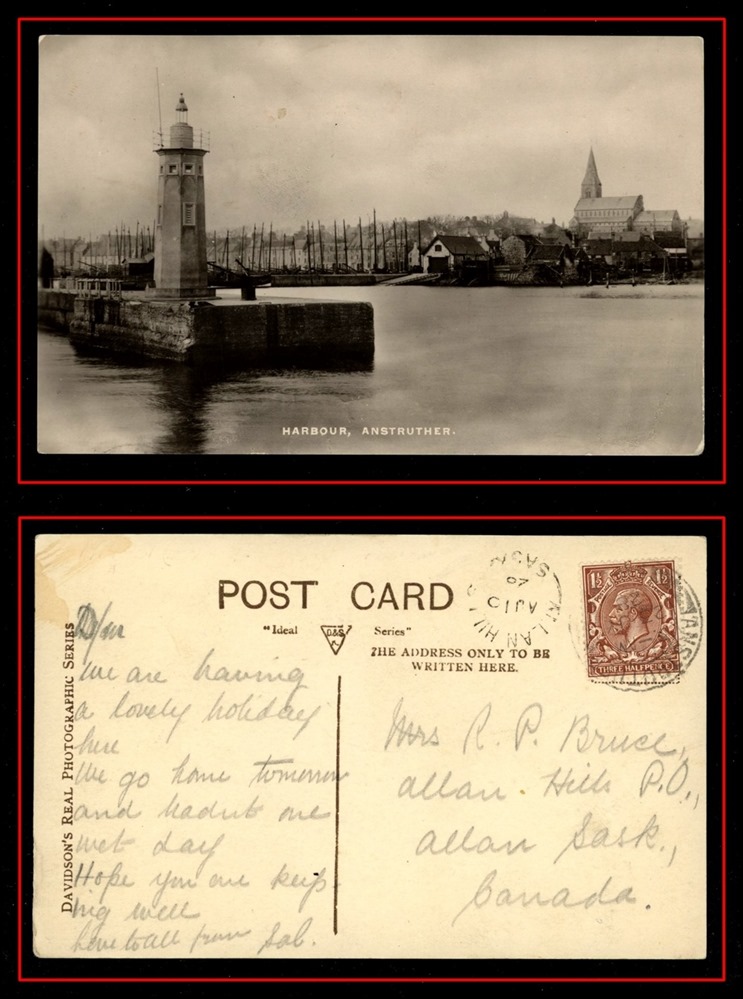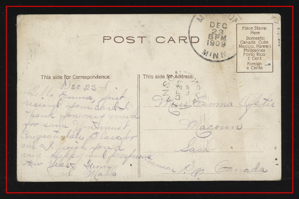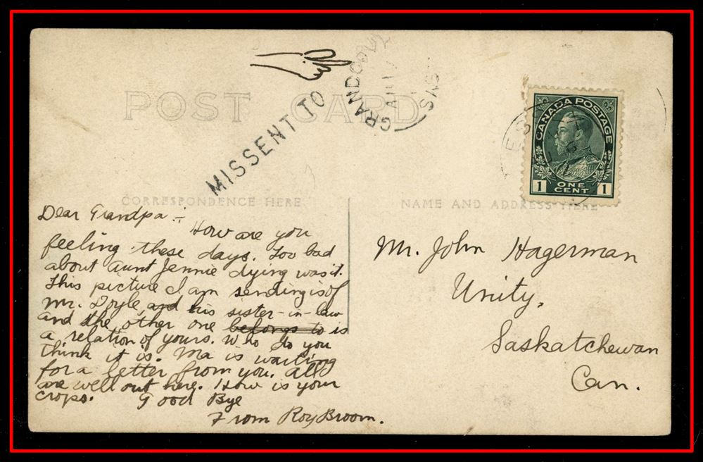 1191 P o/PC 1911 USA Watertown De23/11 S.D.,B/S SAXON HILL DE29/11 SASK split circle. VF
