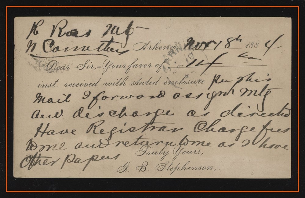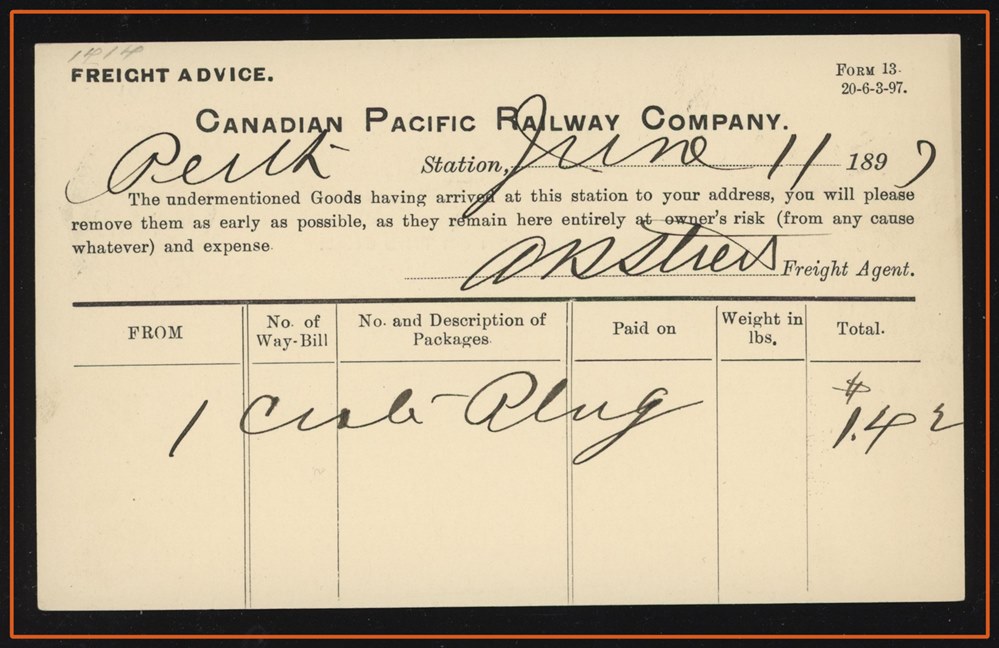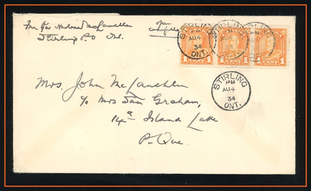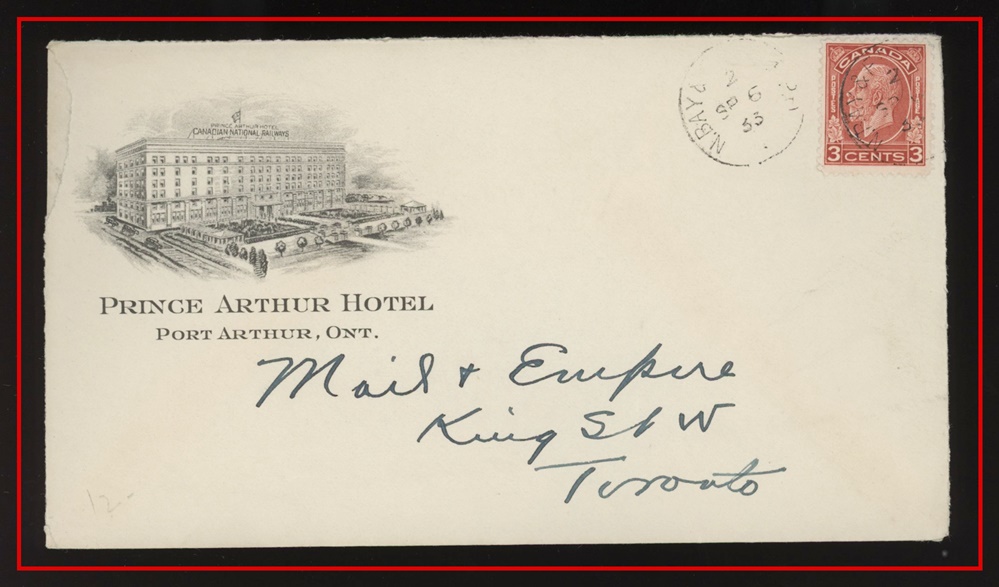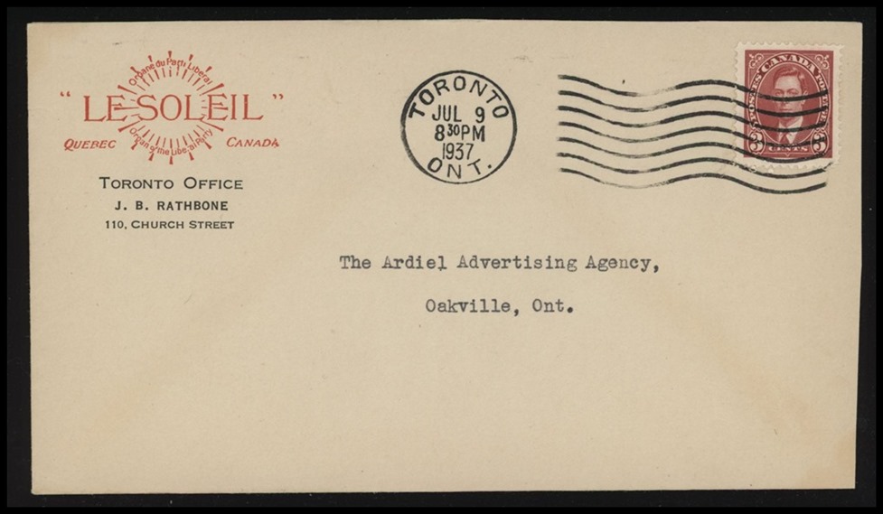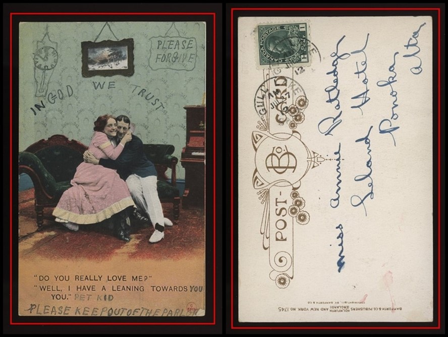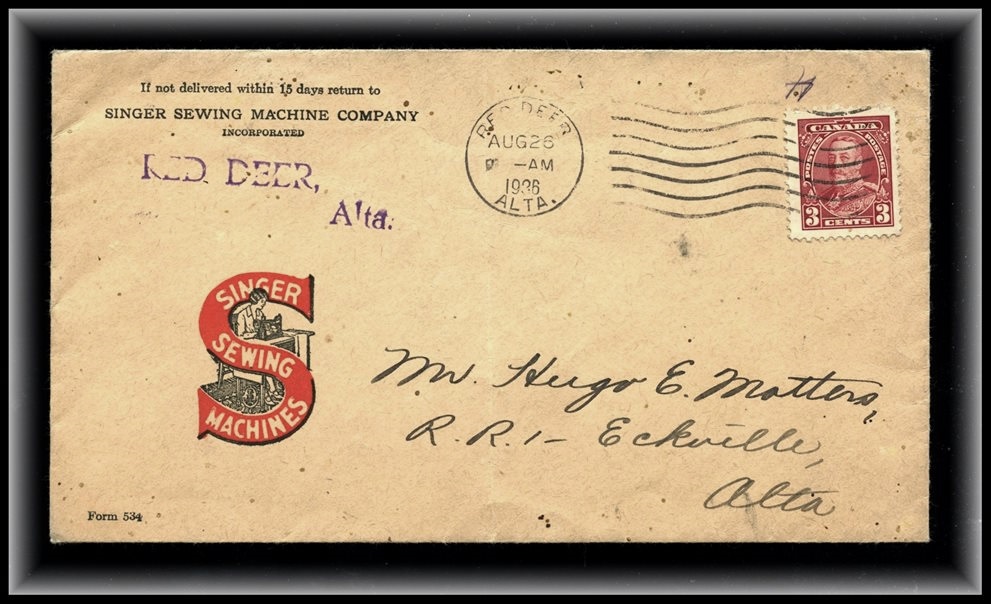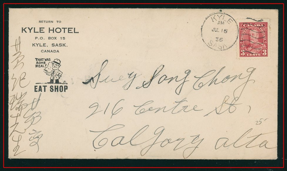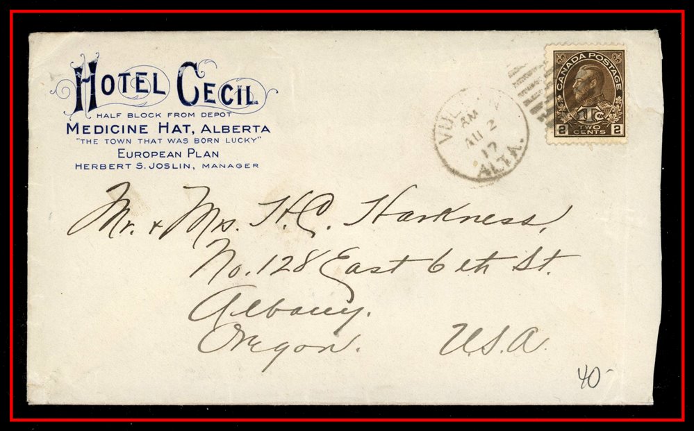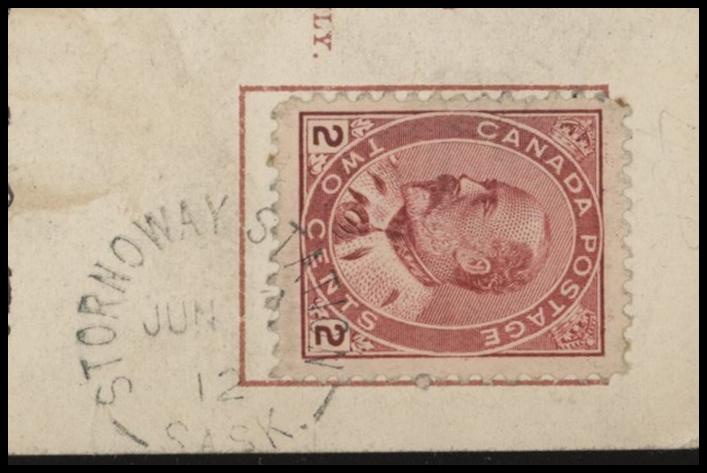 1194 S o/PC 104a GULL LAKE AM JUL 27/12 SASK (2 strikes) to Leland Hotel Ponoka. VF