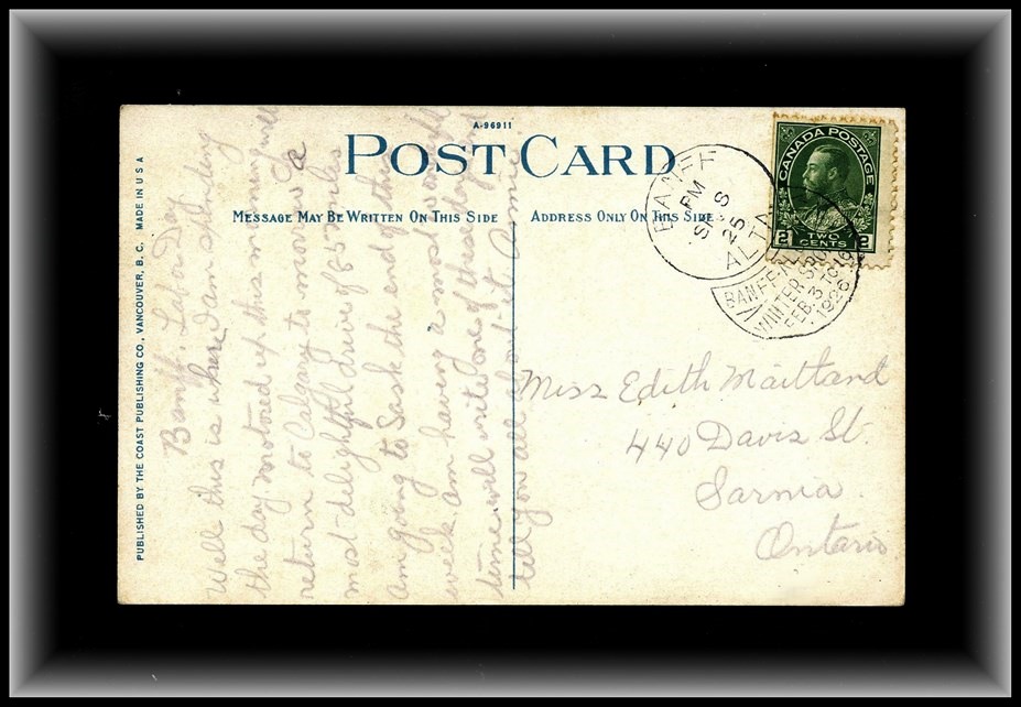 1168 S o/PC 90bs (BKLT single) MAPLE CREEK AM SP 13/09 SASK CDS on lovely Lk.Agnes PC. VF