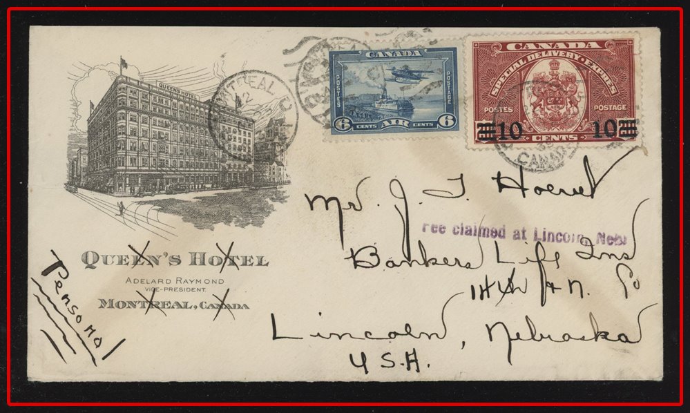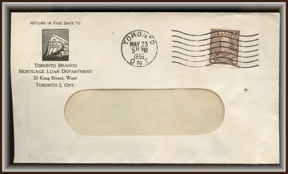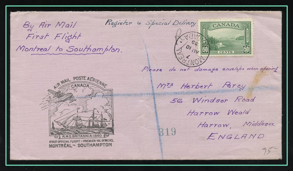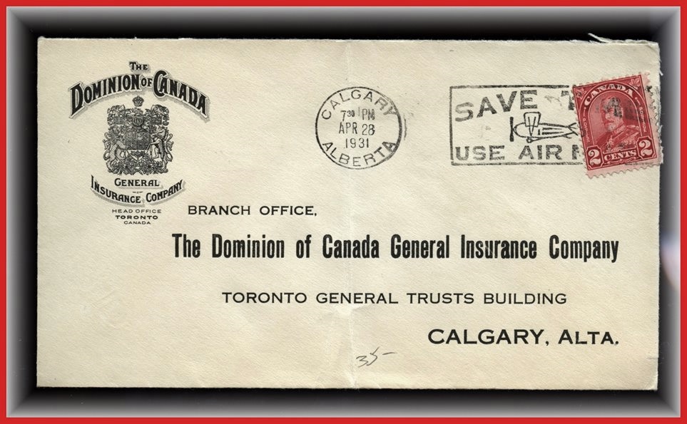 1290 P o/CVR 107 CENTRAL CANADIAN INSURANCE CO WINNIPEG CAN ADVERT CVR, FIRST OFFICIAL AIR