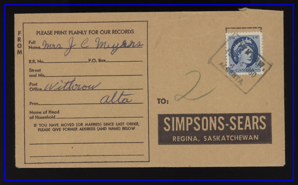 1195 P o/PC 89+1c PC WHEATWYN SP7/12 SASK split circle (Rare RFE) Markinch SP7/12 Sask, B/S