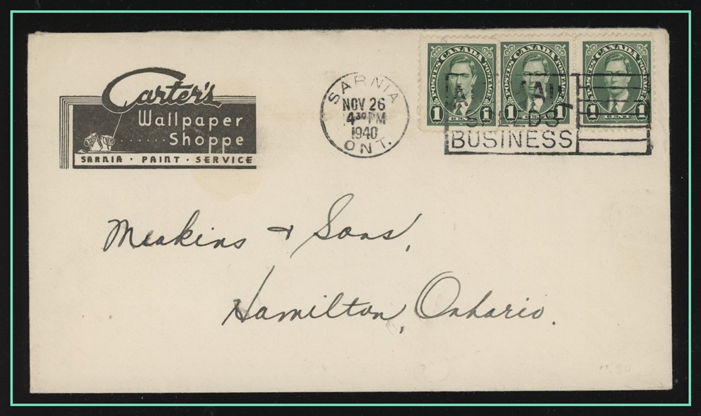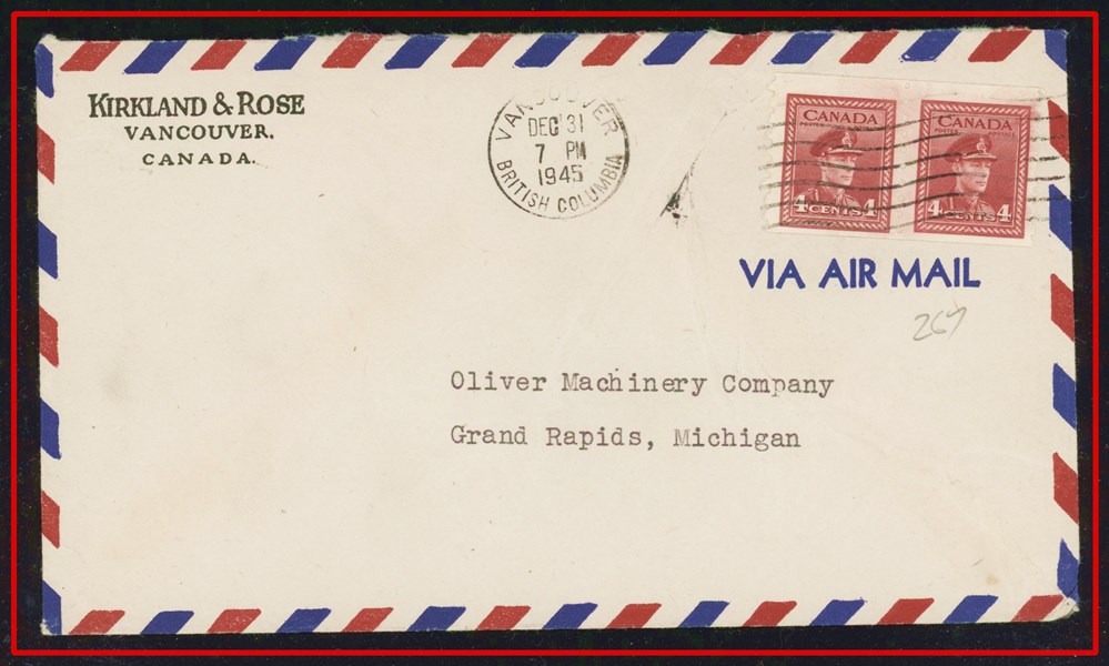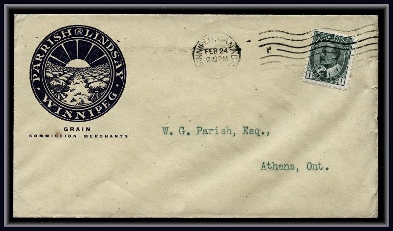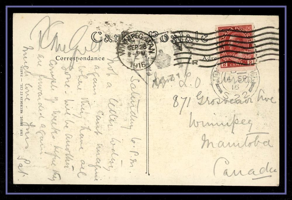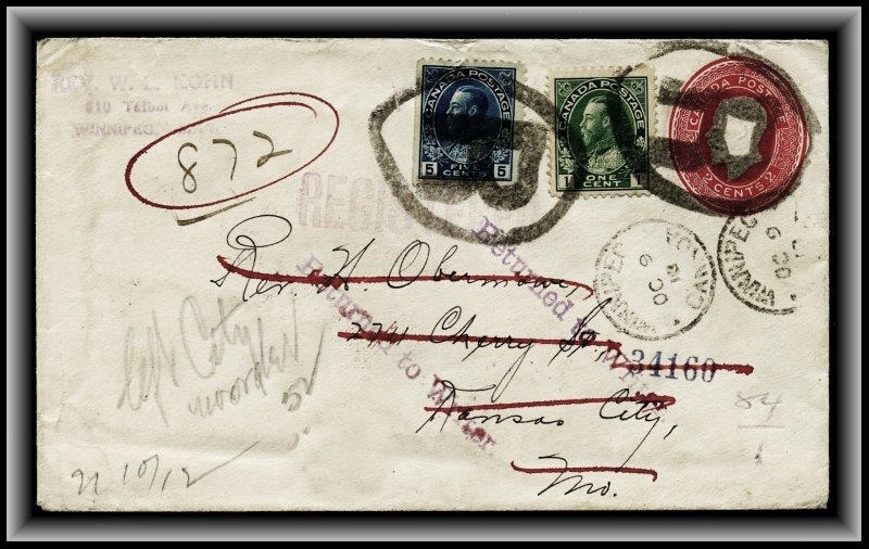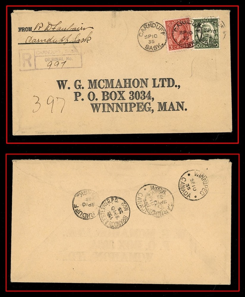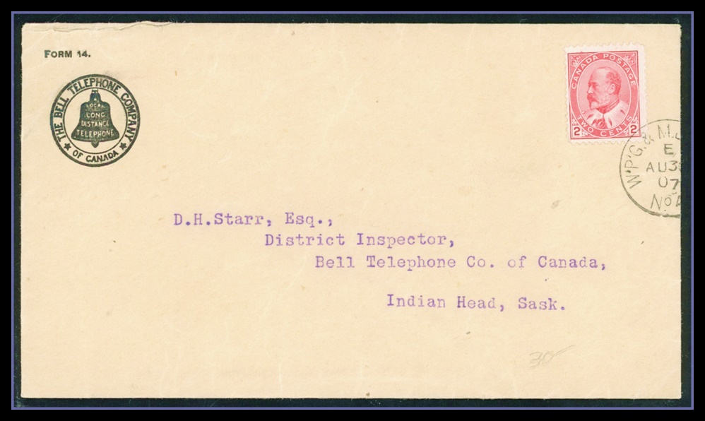large violet CDS, B/S Winnipeg MAIL STATION - R CDS. VF SB 30.00