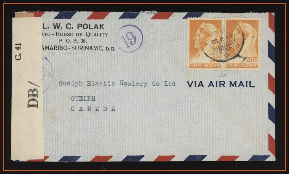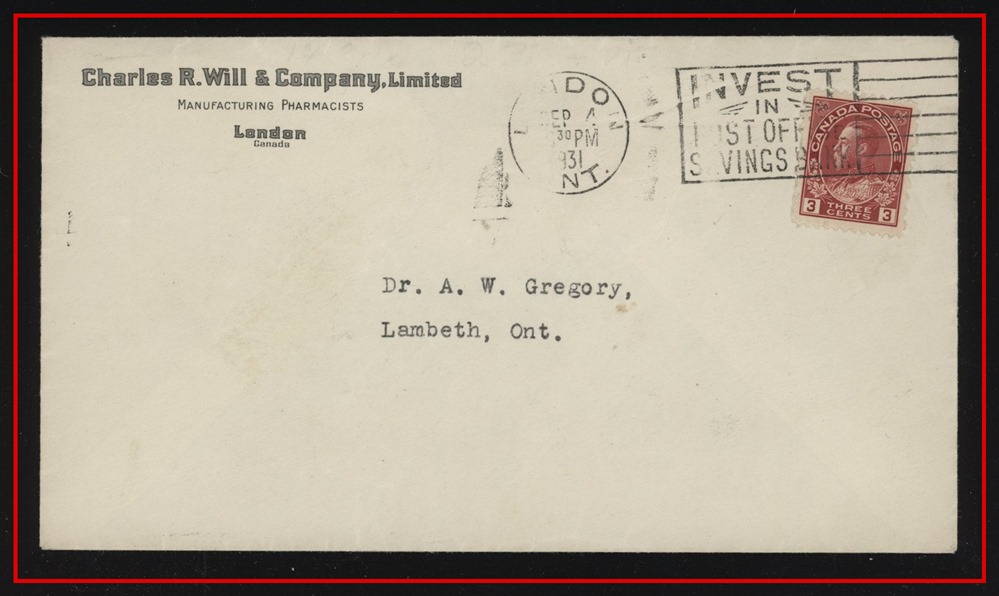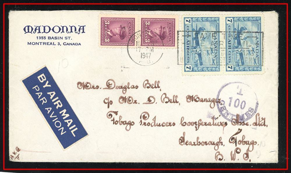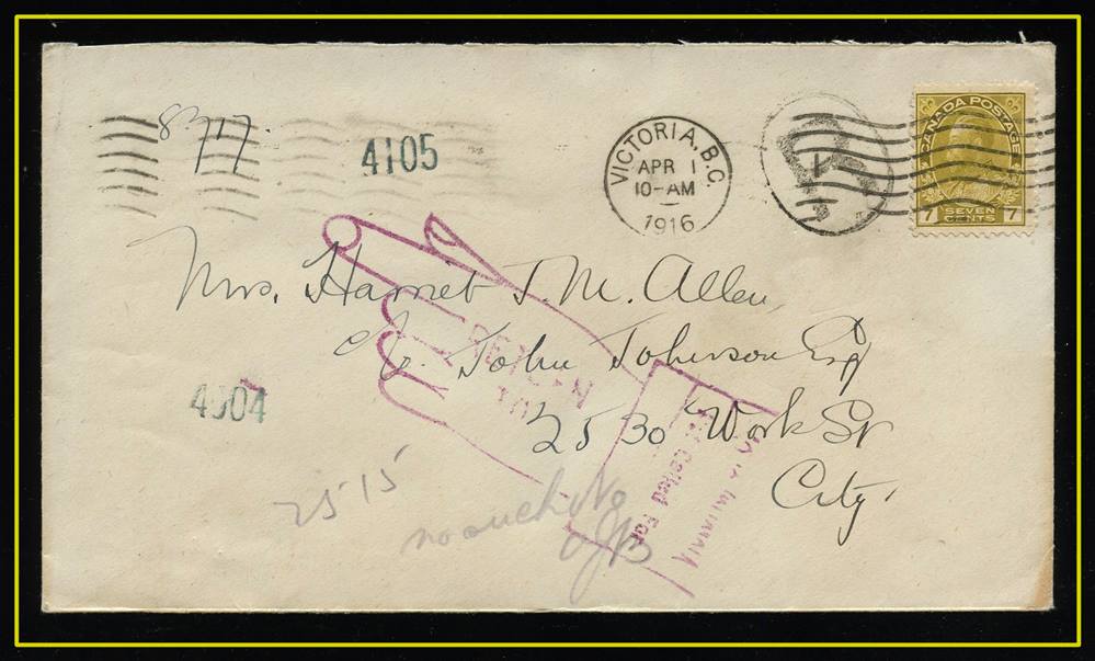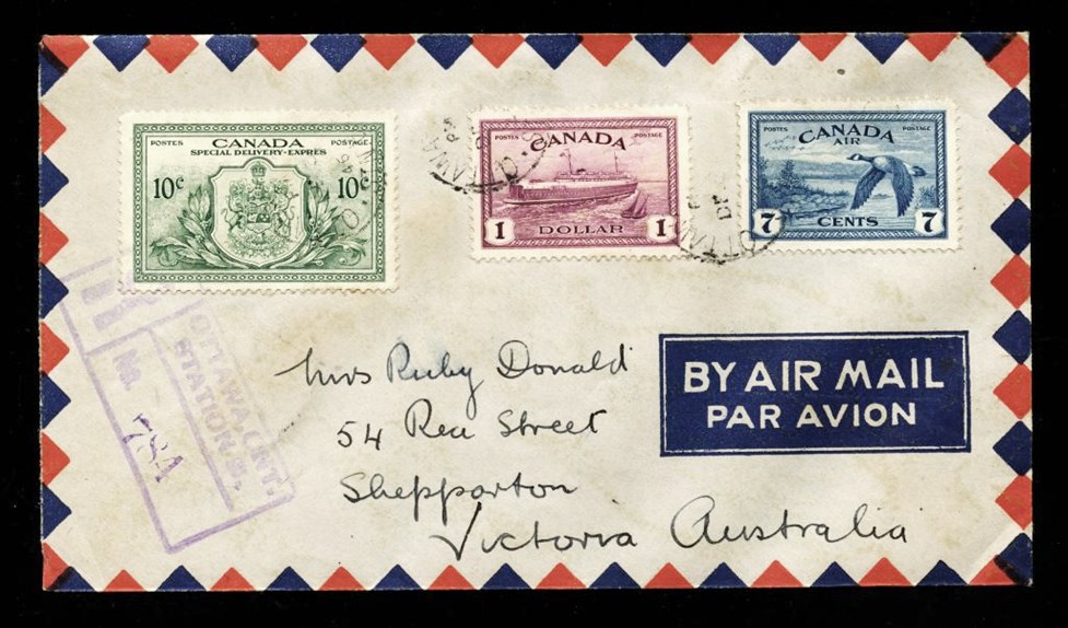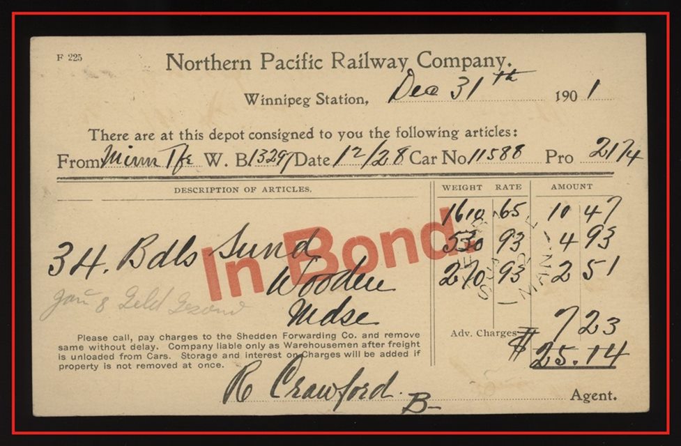 large violet CDS, B/S Winnipeg MAIL STATION - R CDS. VF SB 30.00