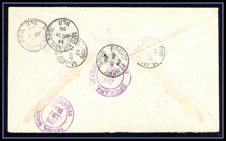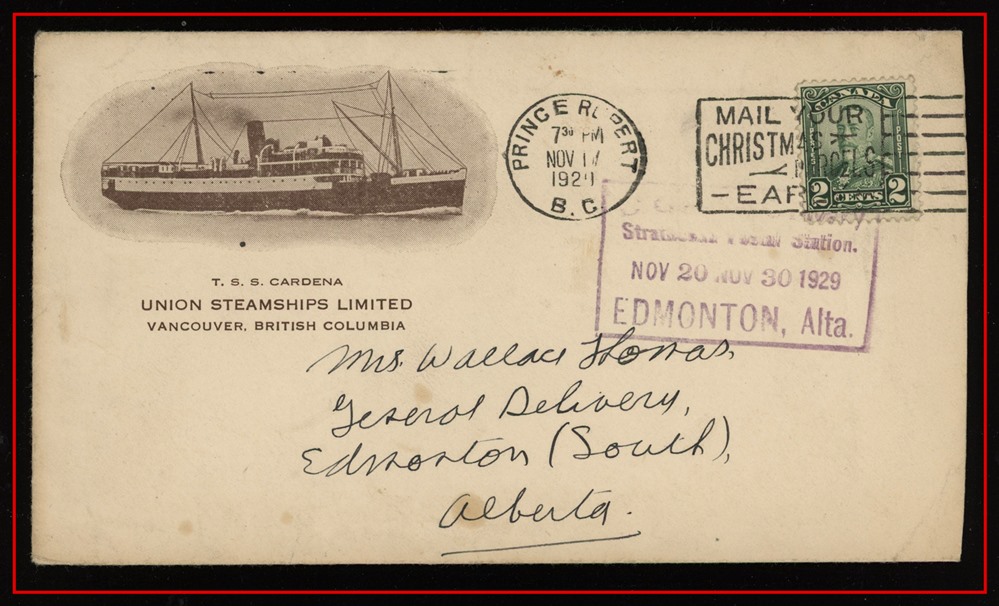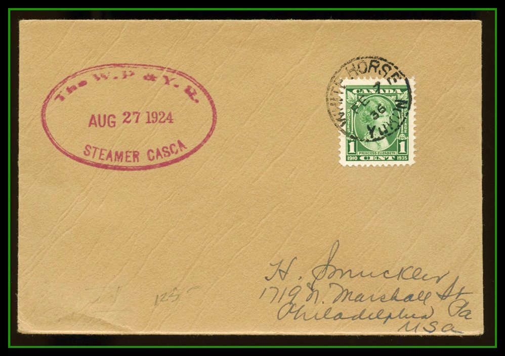 1321 C o/PC 211 WHITHORSE FE 7/36 YUKON CDS,Rare Red Oval 'THE W.P + Y.R AUG 27 1924 STEAMER