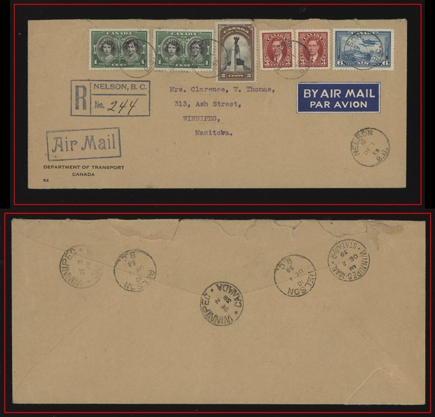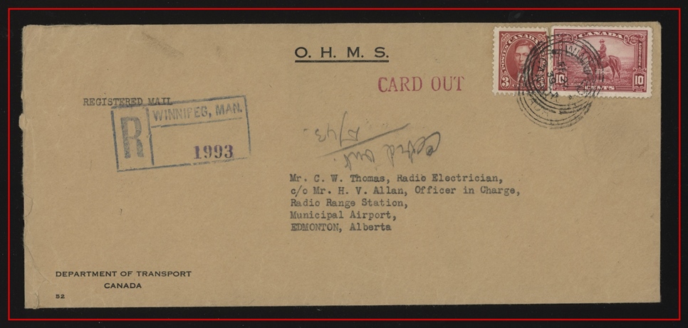 1297 S o/CVR 223 Mountie +233 OHMS Dept.of Transport WINNIPEG orb FE21/39,B/S same,Edm. VF
