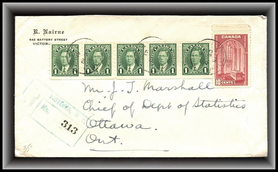 1310 o/CVR 525i centre block + 3 identical pairs on Winnipeg 7/x/70 unaddress cvr 50.00