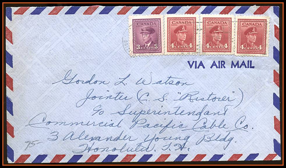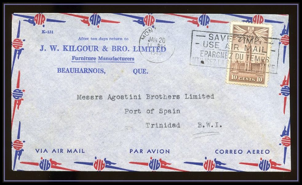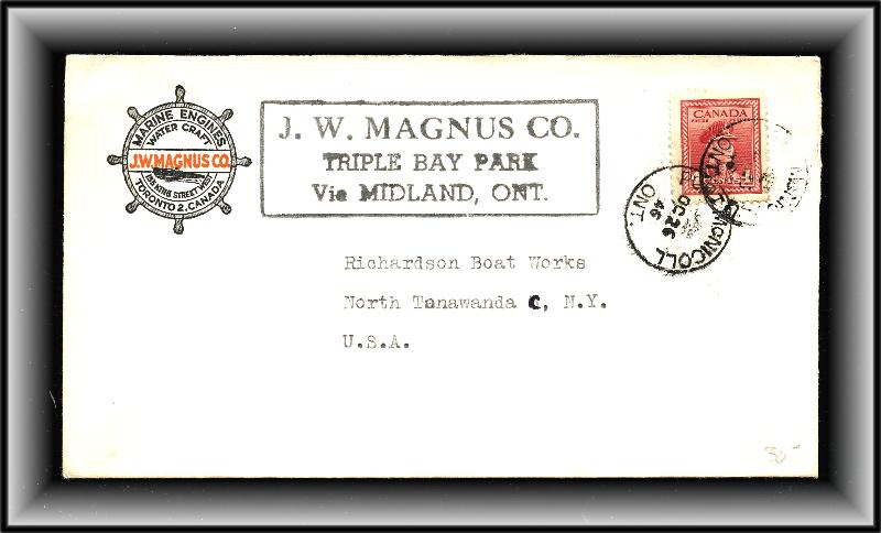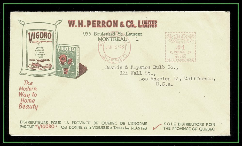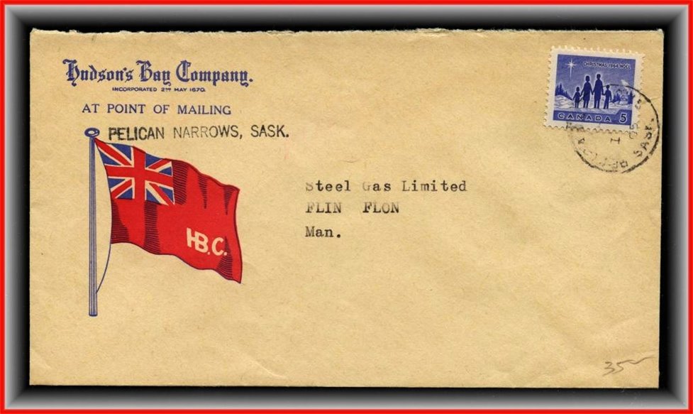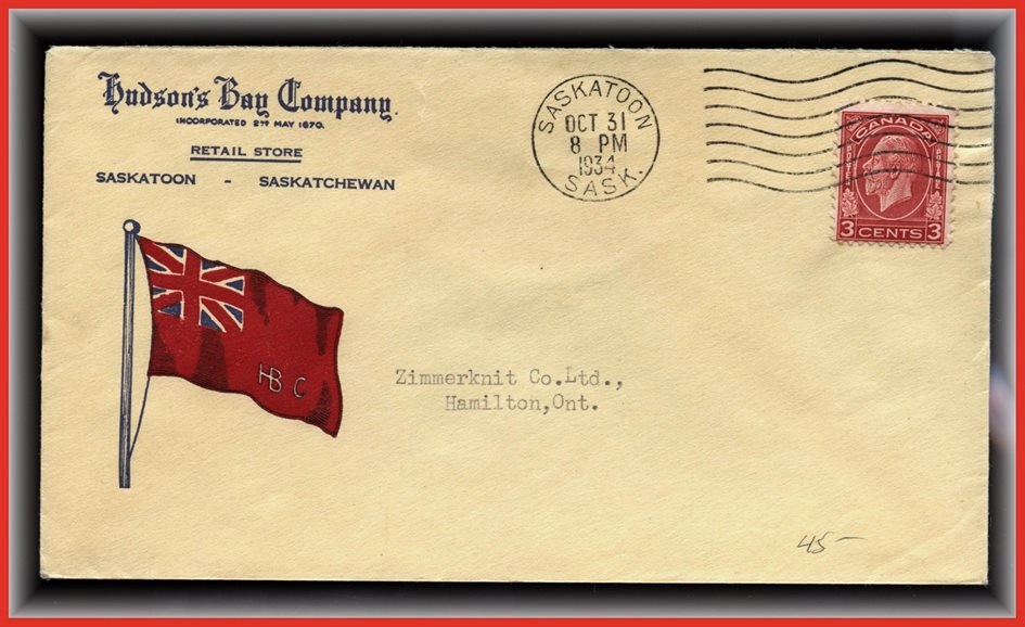 1340 o/CVR Hudson Bay Co Colour Flag HBC cachet,Winnipeg Meter 9 x '54 to USA. VF SB 25.00