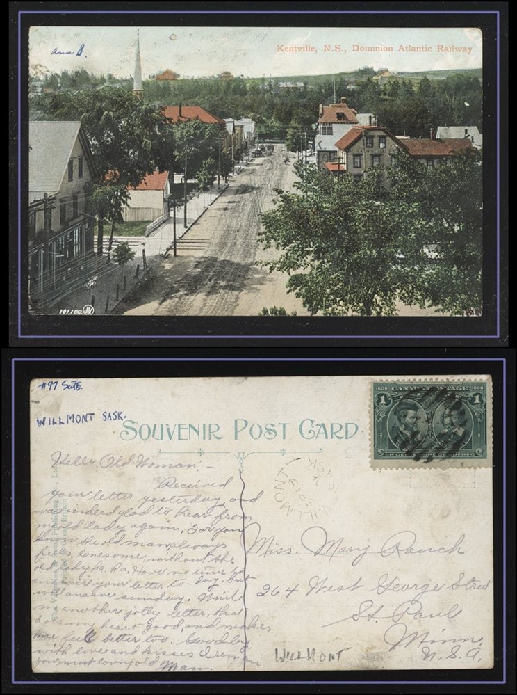 1161 S o/PC 97 WILLMONT SP19/08 SASK split cir.RFD on Kentville NS PC to USA. F-VF