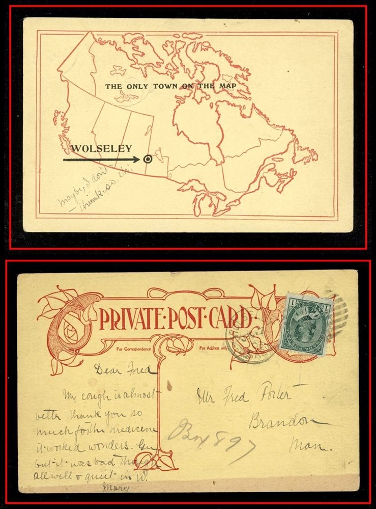 1162 P o/PC 89 Wolseley Map Card "The Only Town on The Map", WOLSELEY JUL 17/08 SASK