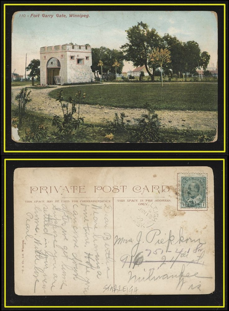 1170 S o/PC 89 with grid STARLEIGH JUN18/09 SASK split cir. on Ft.Garry gate PC to US. F