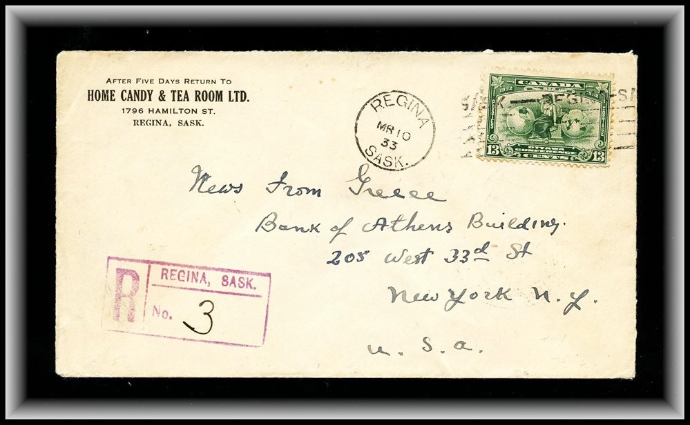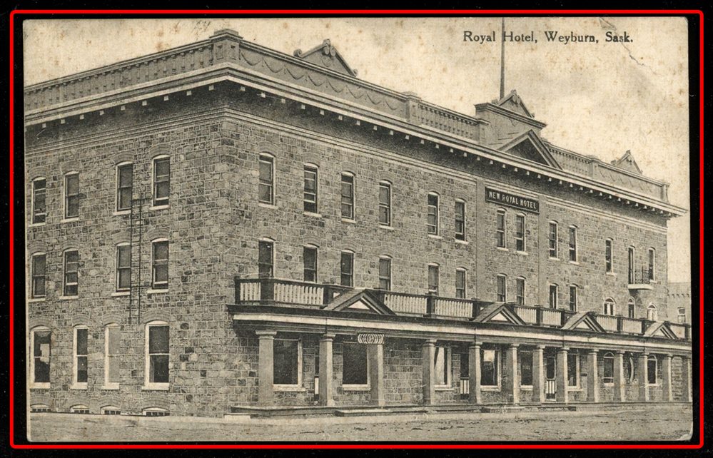 Rare) to USA on Royal Hotel Weyburn Sask PC. VF