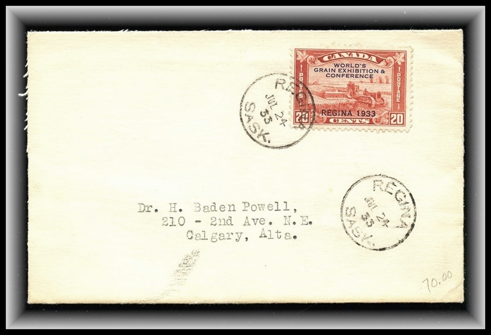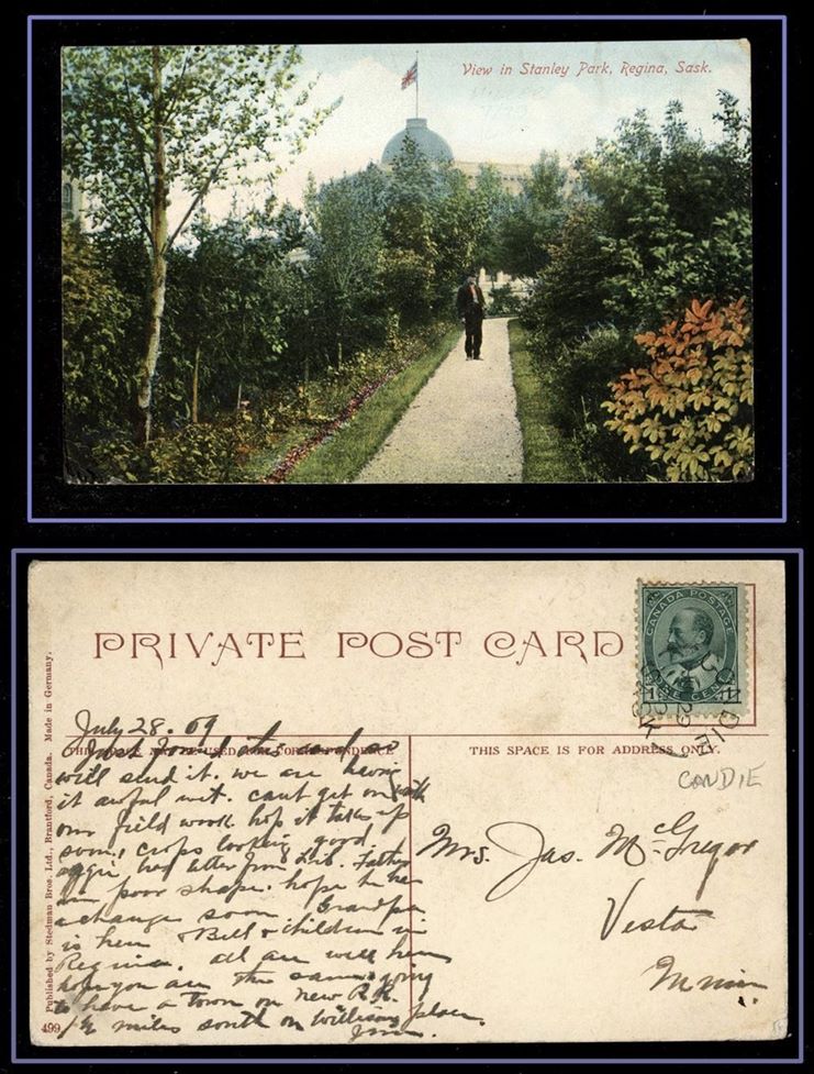 1176 S o/PC 89 CONDIE JUL 29/09 SASK Spl.cir(RFD)on Stanley Park Regina PC to USA. F-VF