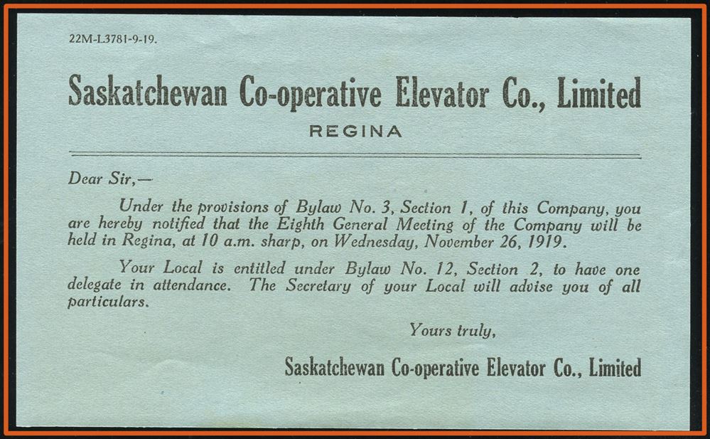 SASKATCHEWAN COVERS, CARDS, CANCELS AND OTHER HISTORICAL ITEMS (chronological order where determined)