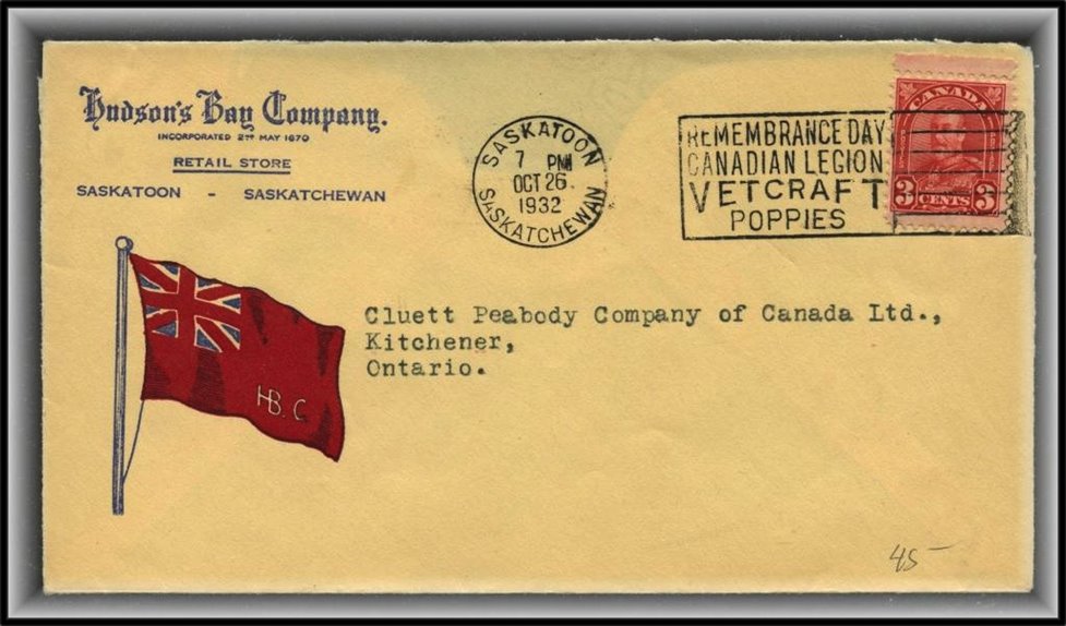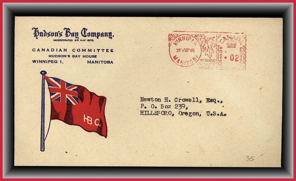 1308 S oCVR 1960 WINNIPEG 29 VIII'60 meter on lovely Hudson's Bay Co Canadian Committee