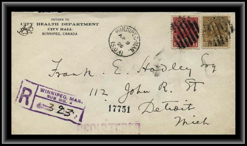 1288 P o/CVR 118+109 HEALTH DEPT CITY HALL WINNIPEG, AP 9/26 (S.O.4) boxed REGISTERED B/S