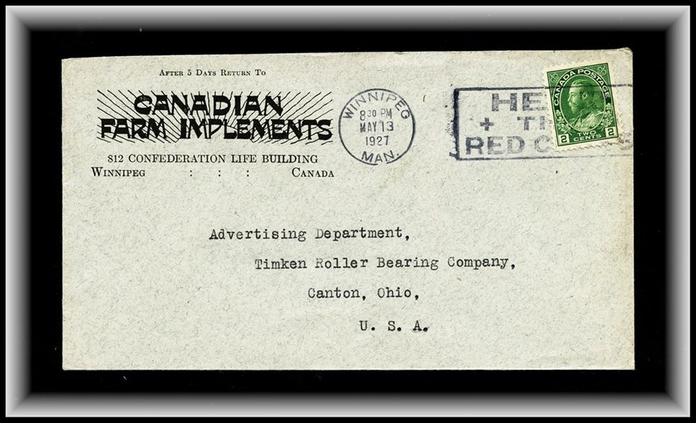 1289 P o/CVR 107 CANADIAN FARM IMPLEMENTS WINNIPEG ADVERT, Winnipeg MAY 13/1927 Man, Help the