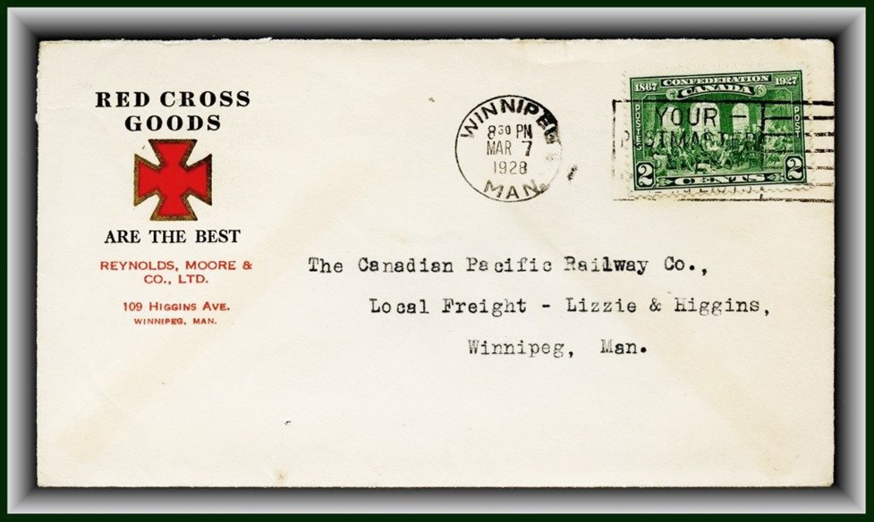 1291 S o/CVR 142 lovely RED CROSS GOODS (Red Maltese Cross) Winnipeg MR7/28 drop letter.VF