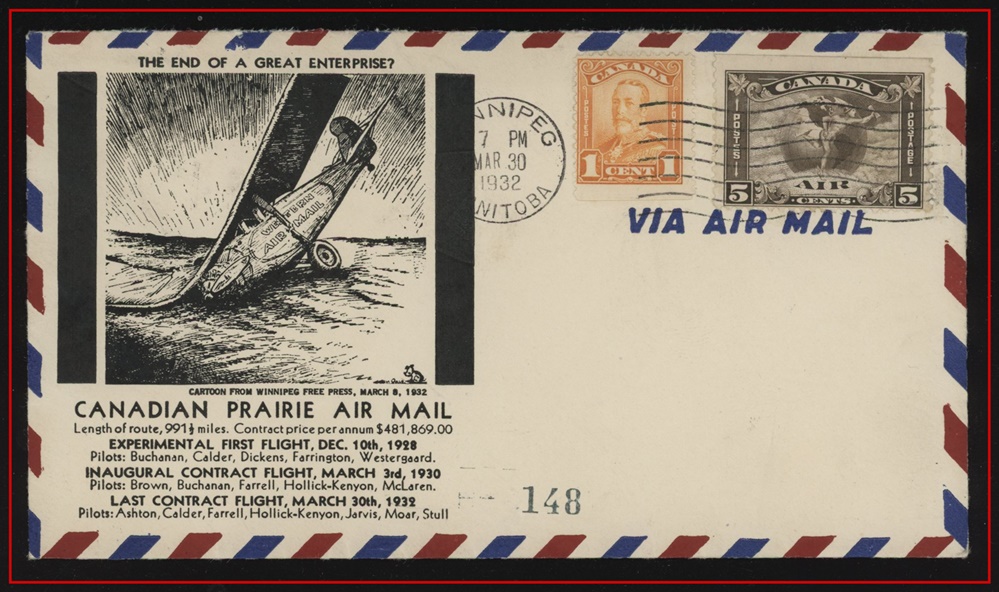 1292 P o/CVR C2+149 CDA PRAIRIE AIR MAIL (the last contract flight March 30/1932 Winnipeg to