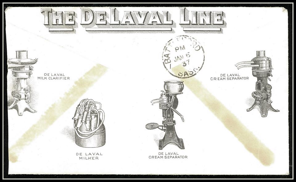 1295 S o/CVR 219 The De Laval Co.Creamery,Cheese Factory 2 sided Advert,WINNPEG JAN 5/37 MAN,