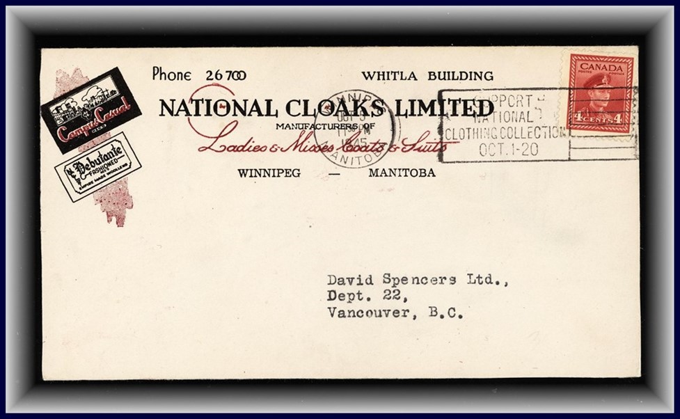 1298 S oCVR 254 NATIONAL CLOCKS LTD colour advert, Winnipeg National Clothing Collection,