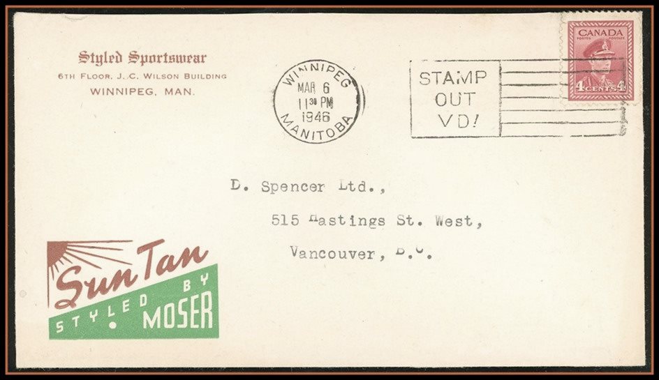 1299 S o/CVR 254 'SUN TAN' Sportsware Advert WINNPEG MAR 6/46 with "STAMP OUT VD!" Slogan to