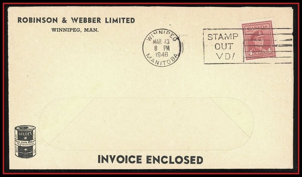 1300 S o/CVR 254 Robinson & Webber Drain Pipe Cleaner Advert,WINNIPEG MR 13/46, STAMP OUT VD!