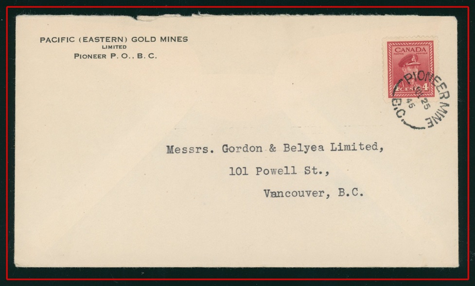 1301 S o/CVR 254 Pacific (Eastern) Gold Mines Pioneer PO Text Advert,PIONEER MINE JUL 25/46 BC