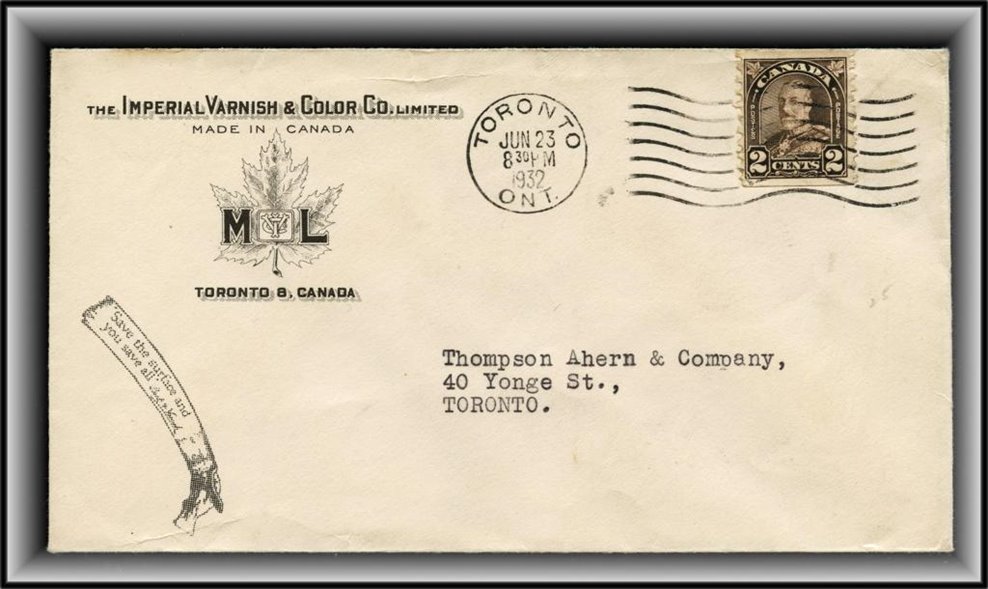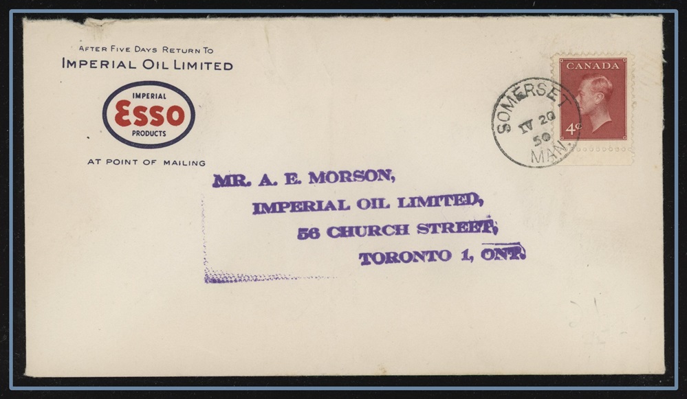 1306 S o/CVR 292 ESSO IMPERIAL OIL CO.LTD Advert, SOMERSET IV/29/50 MAN to Toronto .VF