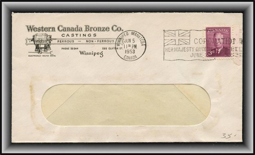 1307 P o/CVR 286 Western Canada Bronze Casting Co Advert, WINNIPEG JUN 5/53 MAN window env.