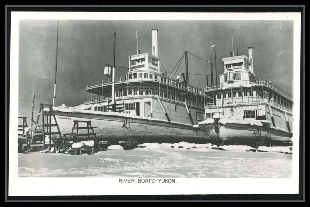 1316 P */PC Yukon Paddlewheelers (one is the Klondike) in dry dock,the other is Nasuttin Real