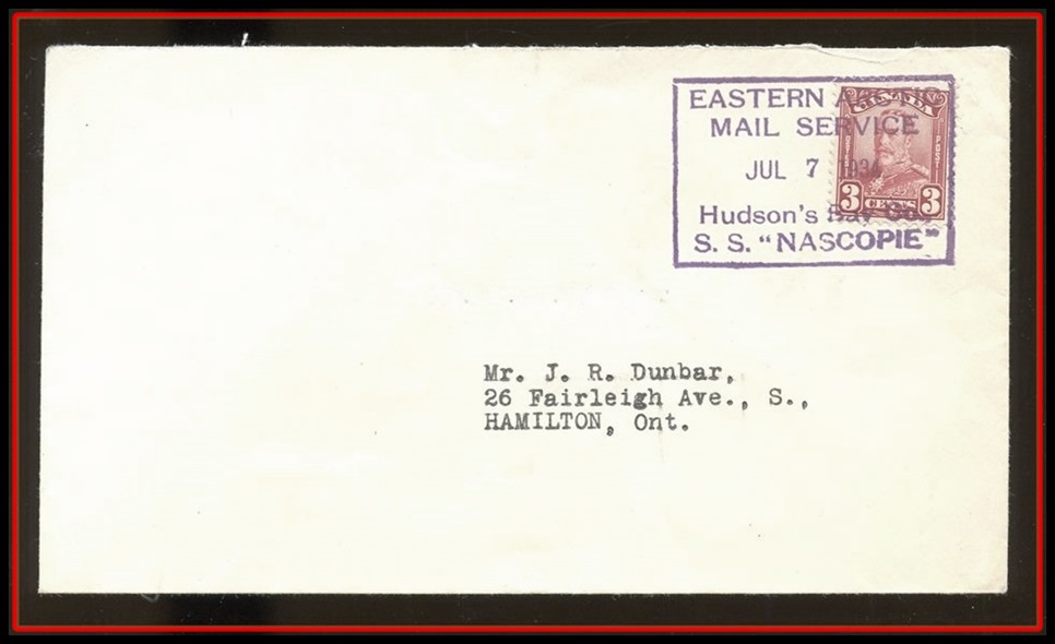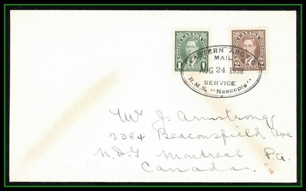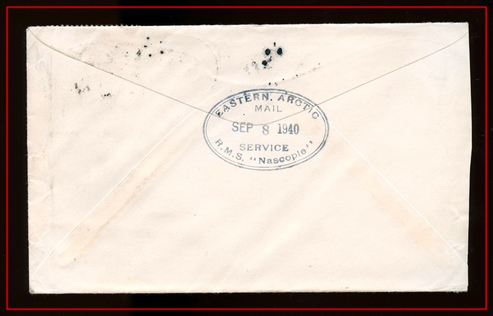 EASTERN ARCTIC MAIL SEP8/1940 RMS NASCOPIE in blue plus enclosure. VF