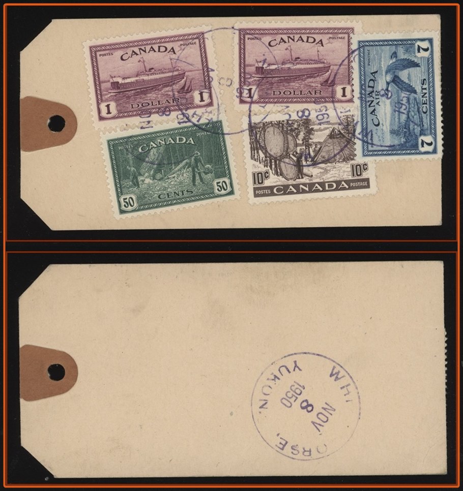 1326 P o/TAG 273(2)+272 etc WHITEHORSE NOV8/1950 YUKON VF (paying $2.67) nice Yukon item