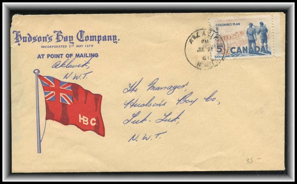 1331 S o/CVR 394 Hudsons Bay Co Colour Flag, AKLAVIK N.W.T PM JUL 21/61 to Tuktuk NWT