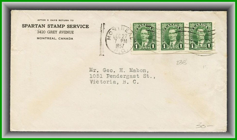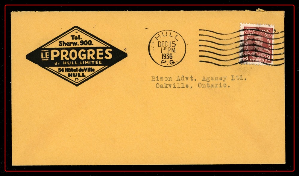 1293 oCVR 217,218 WINNIPEG DEC 23/36. Scarce Assistant Postmaster, Winnipeg Man., very