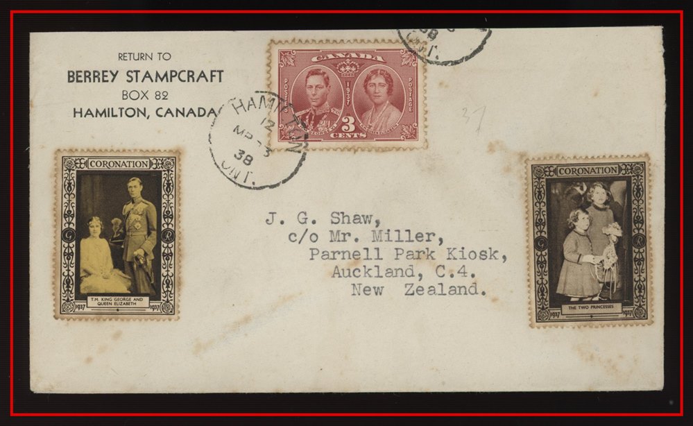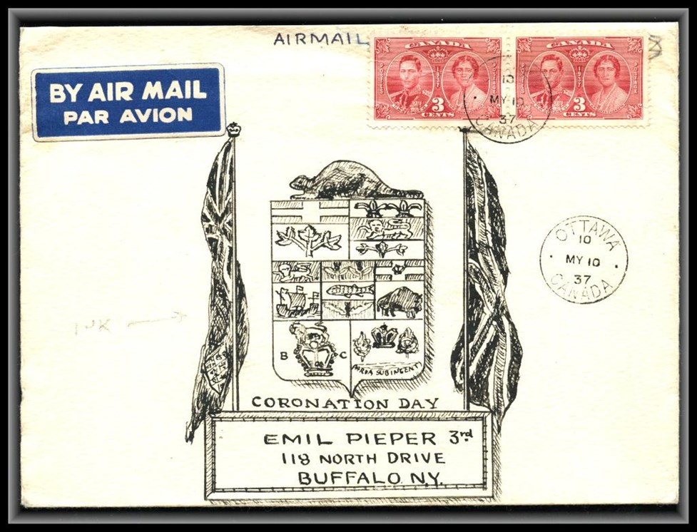 1294 o/CVR 237 Super Coronation Cachet,Winnipeg Flag May 12/37. VF SB 25.00