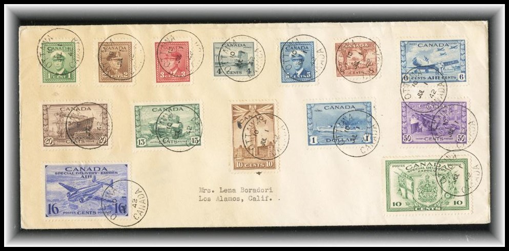 combos of 1938 Pictorials and 1942 War Issue (11 cvrs total), 9 @ 30c rate, one