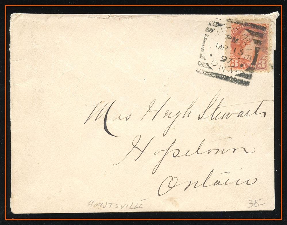 1897 S o/CVR 35i strip of 3, TOR.& OTTAWA C.P.R. NO.1 (2 strikes) B/S Perth Ont. Fine