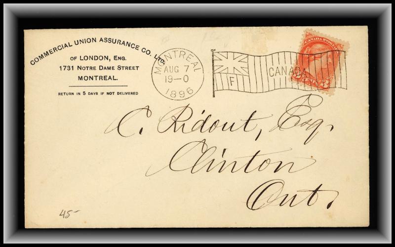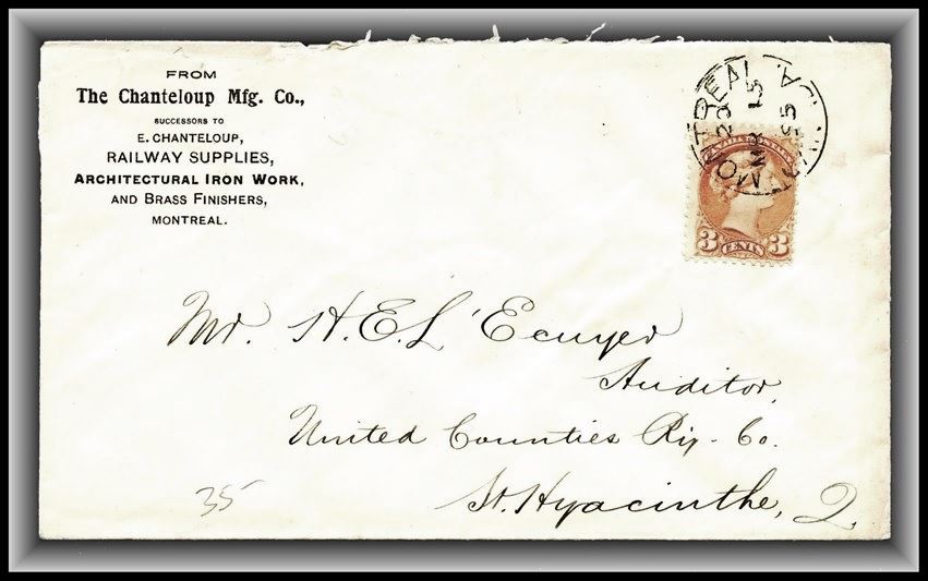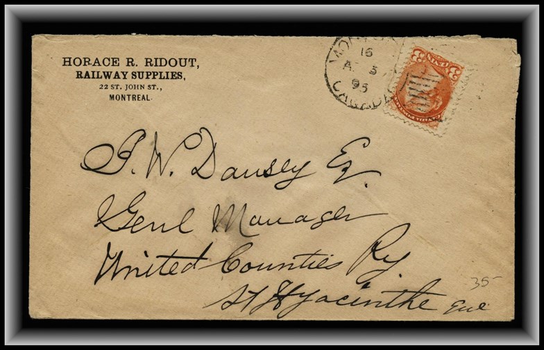 1900 S o/CVR 41 HORACE R. RIDOUT RAILWAY SUPPLIES crn card MONTREAL AP3/95, B/S St.Hycinthe