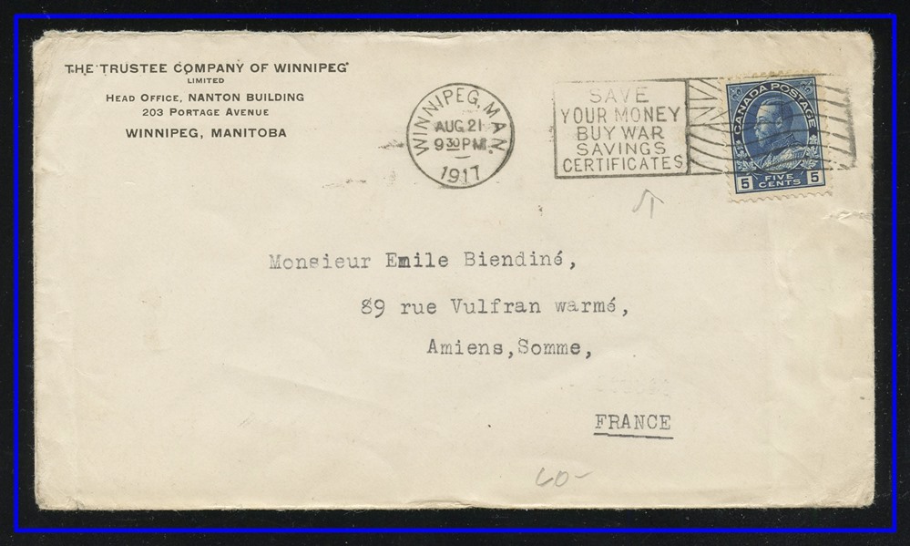 1913 S o/CVR 79 & 77 'R' in circle, Winnipeg 14 Oct 18/02 (3 strikes). B/S same,