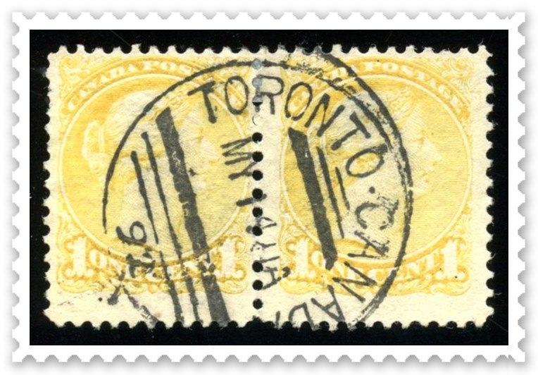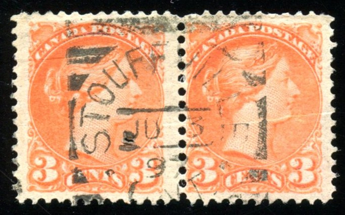 2028 S o 41 VF Pair, STOUFFVILLE JU 3/97 ONT sq.cir. Nice pre-printing crease on 1.