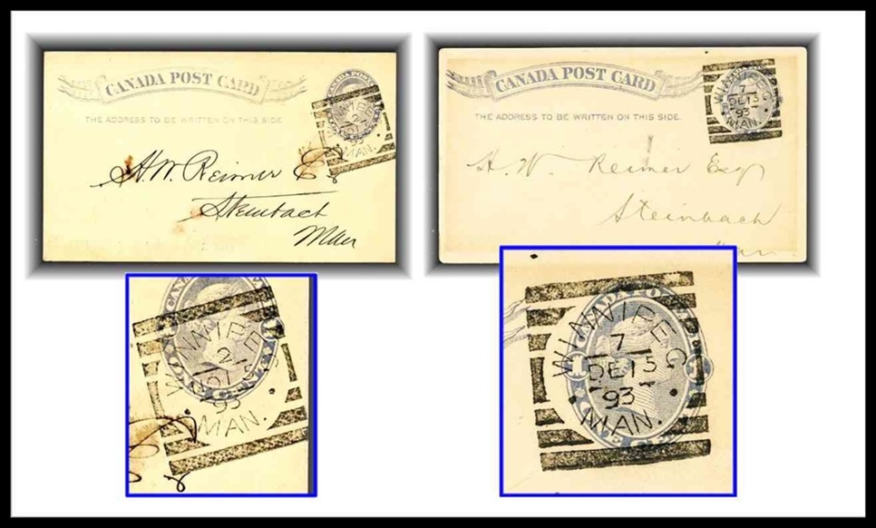 1991 o7PC SQUARED CIRCLE cancels on 1c CANADA POST CARDS used 1894 to 1897. Includes
