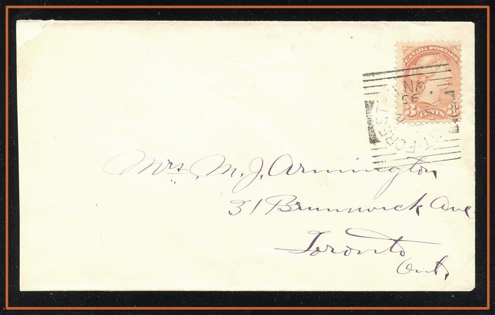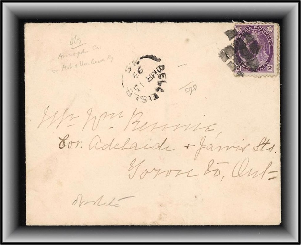 2042 S o/PC 1899 LONDON 15 NO 21/99 ONT SQ.Cir type 1 to Toronto(interesting letter). VF