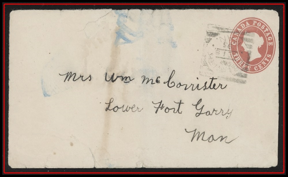 1996 P o/PS 1895 on 3c P.Stat SELKIRK PM DE 18/95 MAN SQ.Cir, B/S Lower Fort Garry DE 18/95