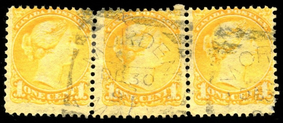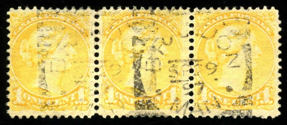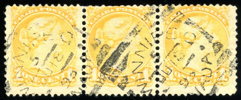 2035 o/CVR 75 Strip of 3 SMITH FALLS NO 23/98 ONT SQ.Cir(2 strikes), B/S Brockville,Athens.