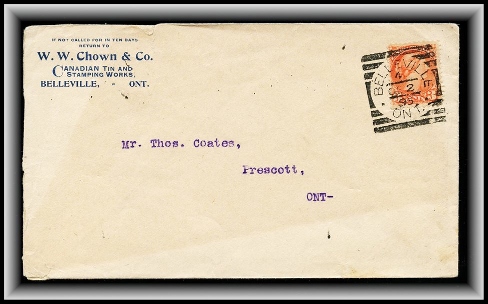 2004 P o/CVR 41 W.W.CHOWN & CO. CDN TIN +STAMPING WORKS BELLEVILLE advert. BELLEVILLE 4/DE2
