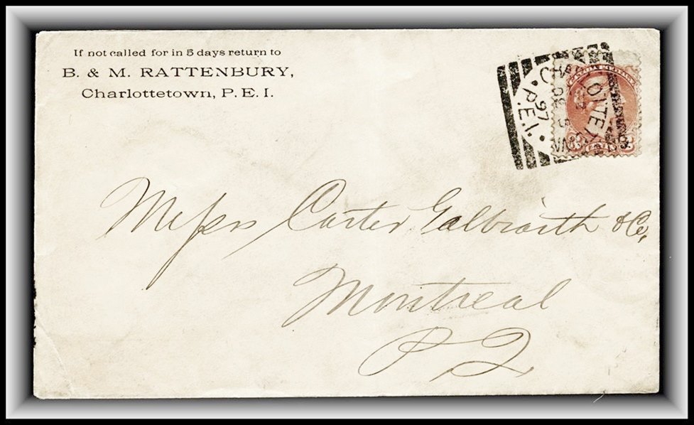 2016 S oCVR 41 B&M RATTENBURY, CHARLOTTETOWN, lovely strike CHARLOTTETOWN 2/DE 5/97 PEI sq.