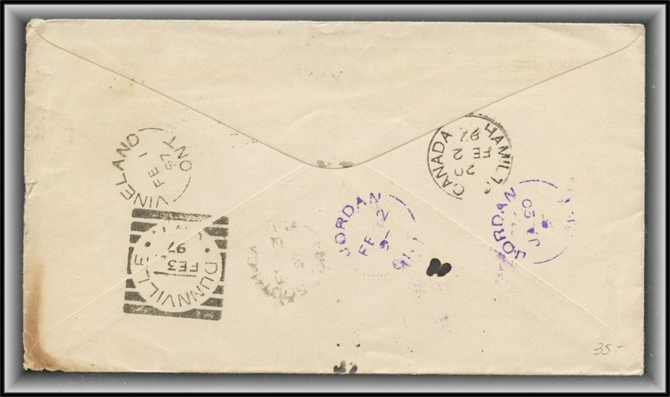 cir, B/S Same, Hamilton,Jordan Ont Spl.cir, Dunnville FE 3/97 Ont SQ.Cir. F